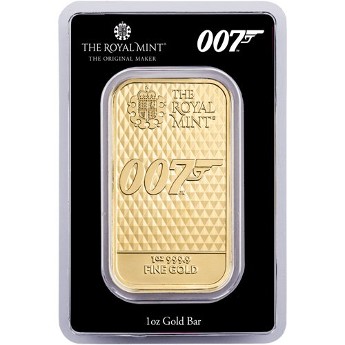 These 1 oz British James Bond Diamonds Are Forever Gold Bars are available to you for purchase online with a sealed blistercard. The sealed packaging protects the 1 oz gold bar and offers a James Bond-themed assay card with a unique serial number for each bar.