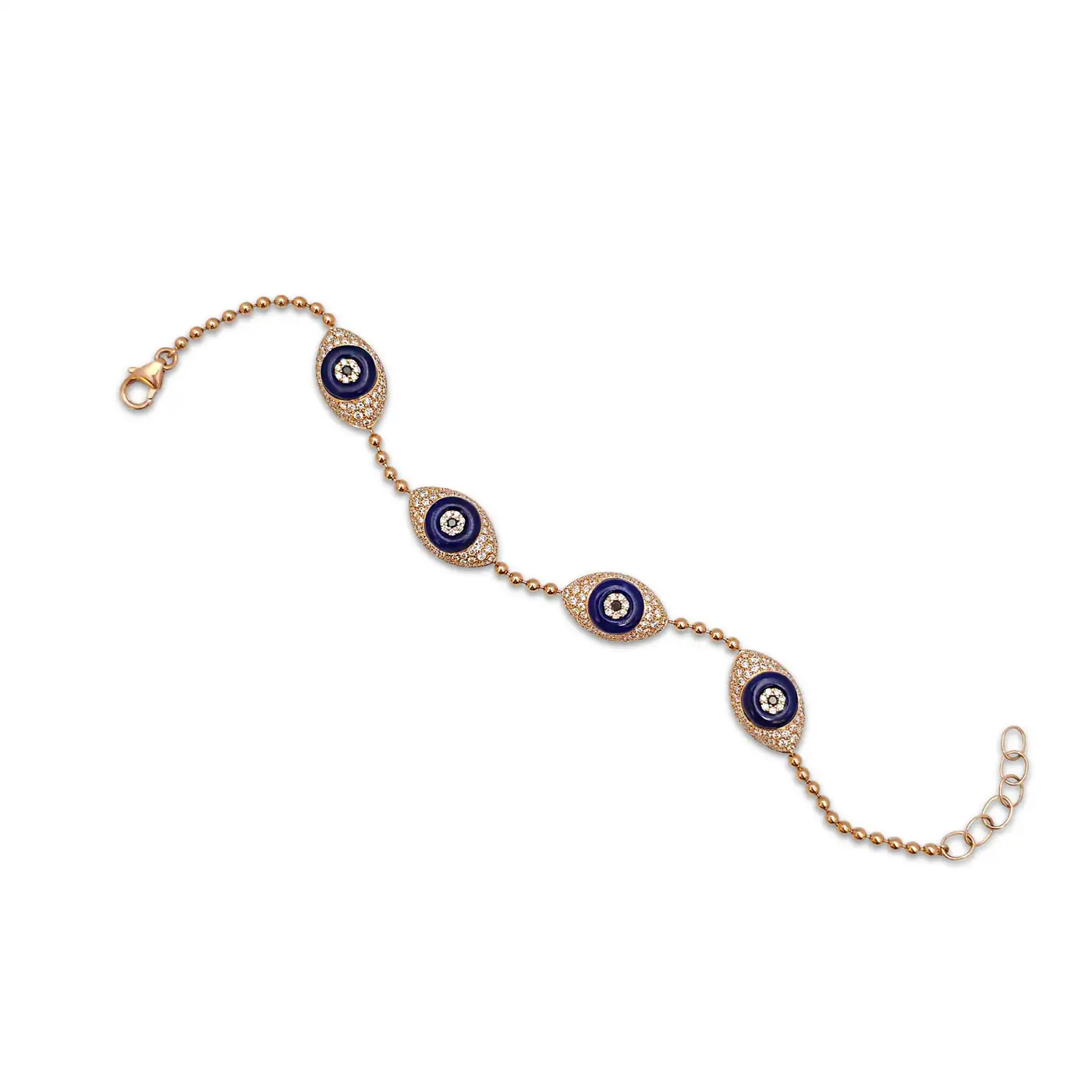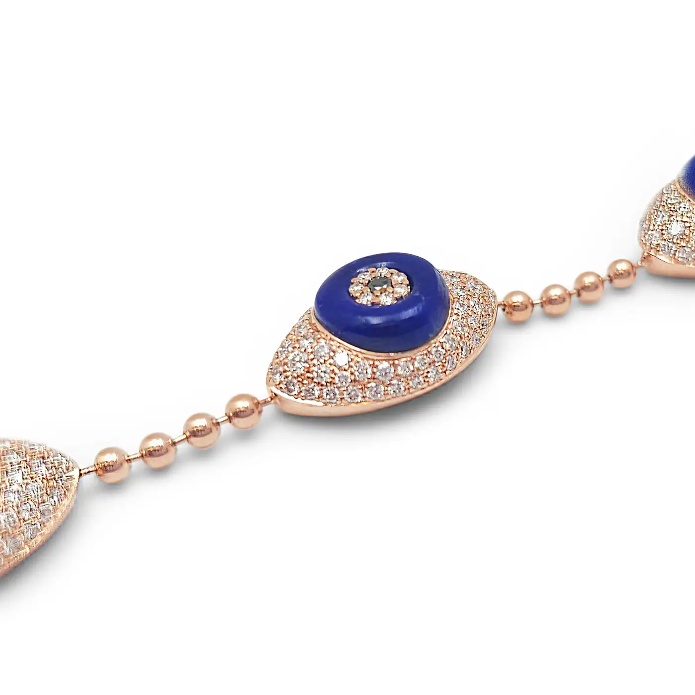 18 Karat Rose Gold Diamond and Lapis Lazuli Evil Eye Bracelet