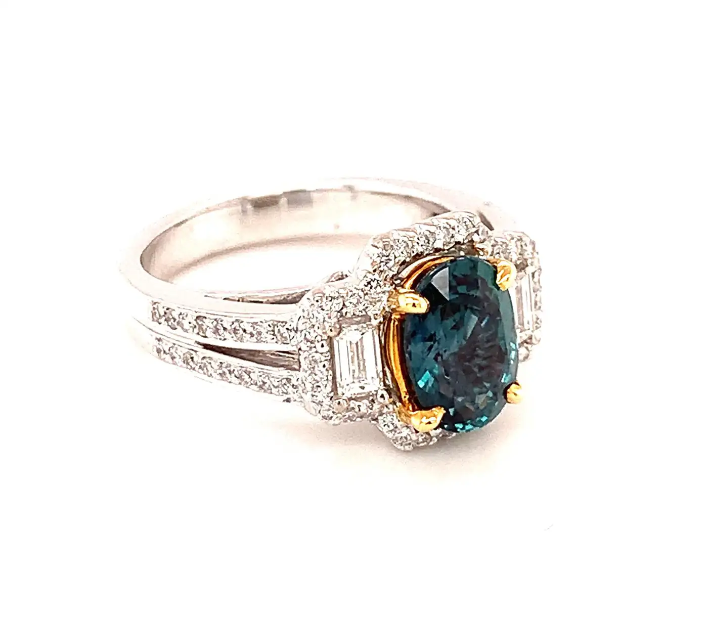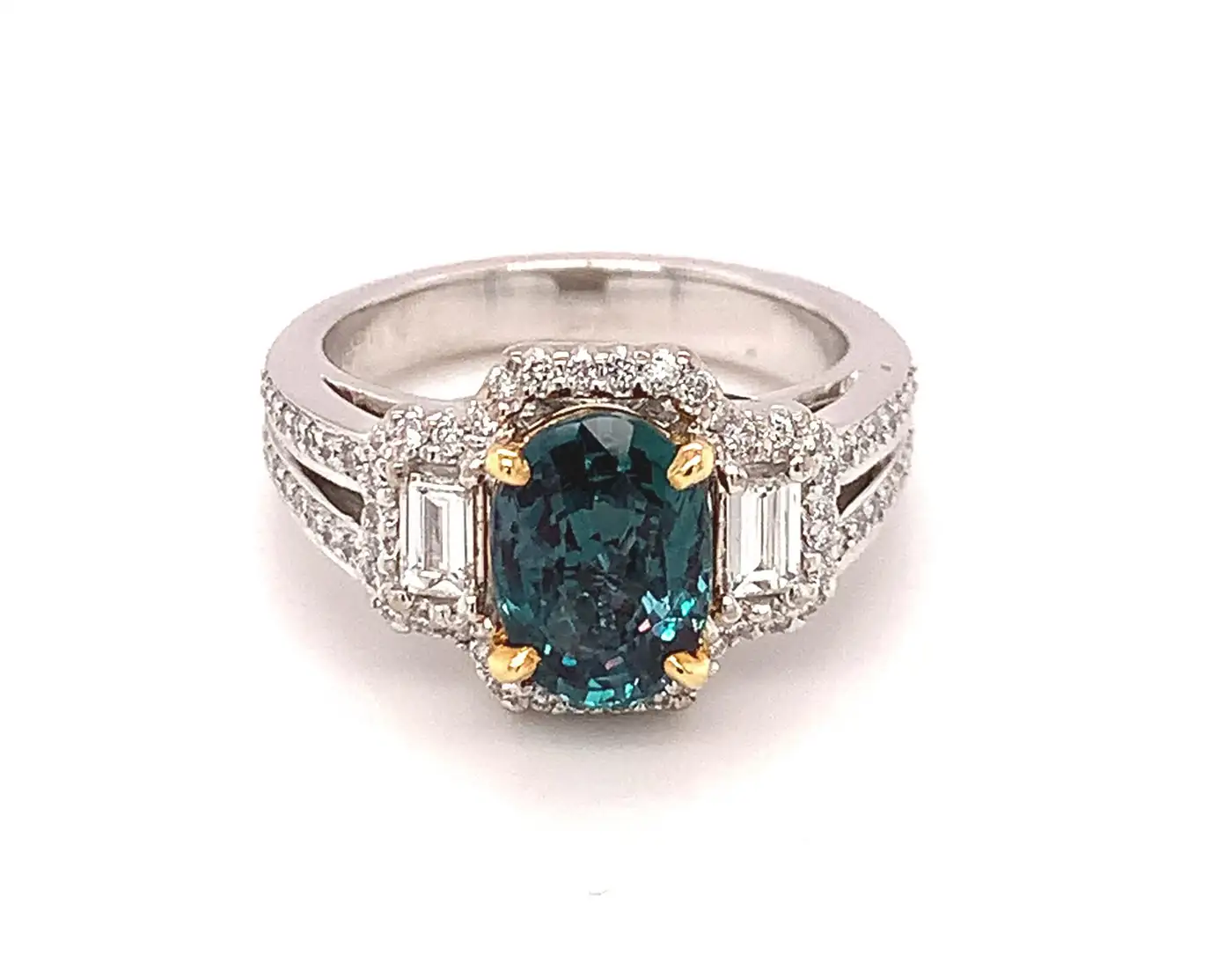 2.02 Carat GIA Certified Alexandrite Chrysoberyl and Diamond Engagement Ring