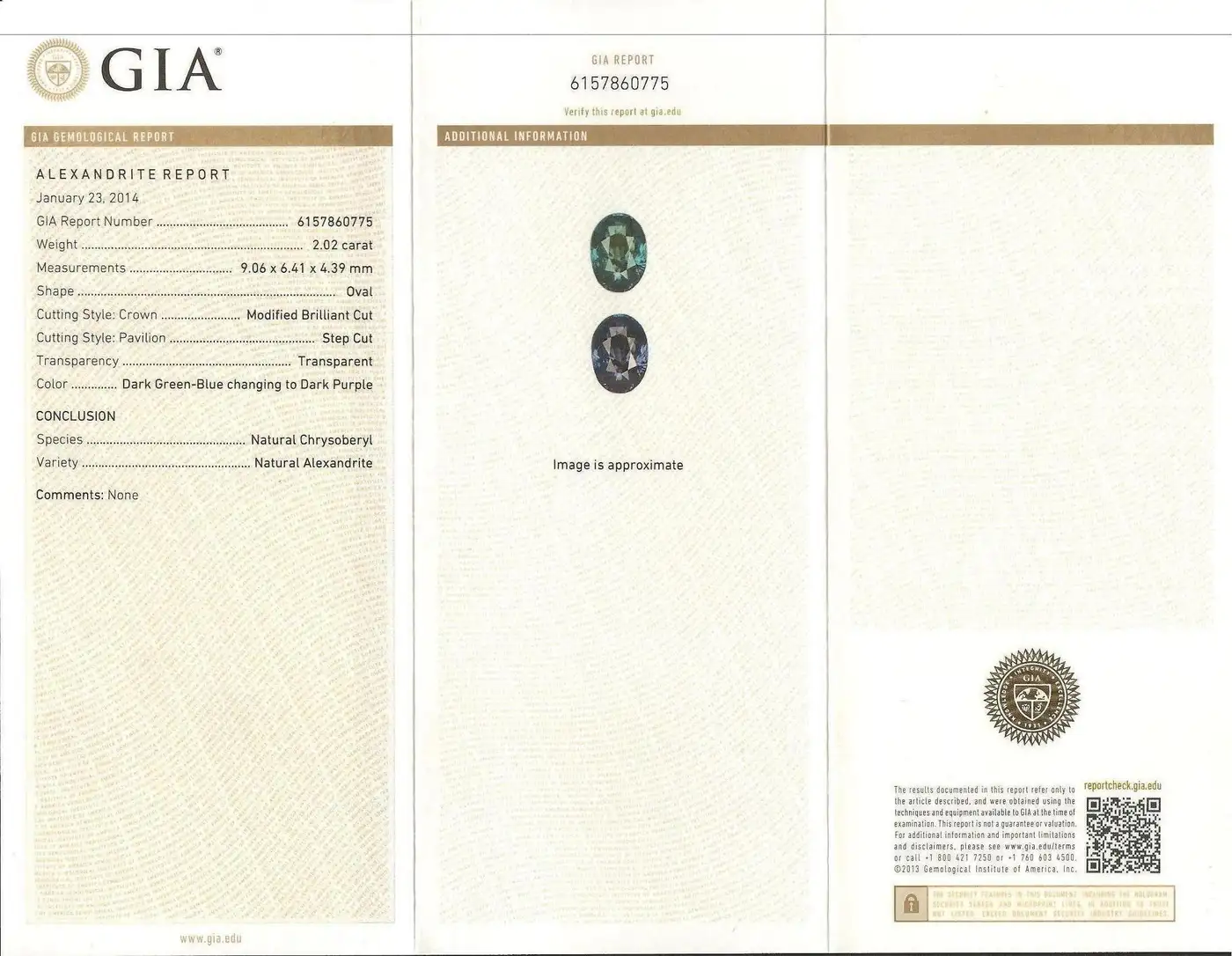 2.02 Carat GIA Certified Alexandrite 2.02 Carat GIA Certified Alexandrite
