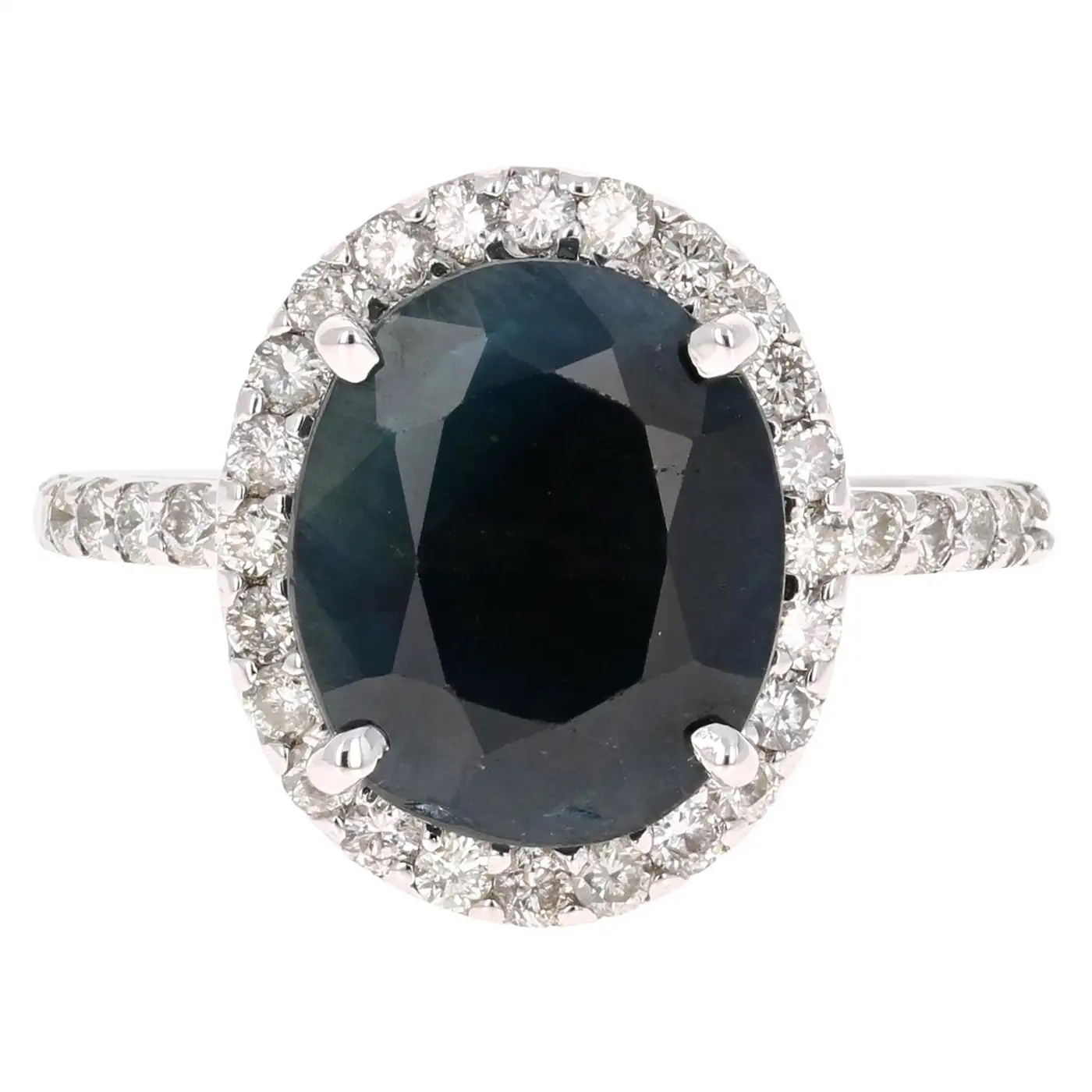 4.65 Carat Sapphire Diamond 14K White Gold Halo Ring
