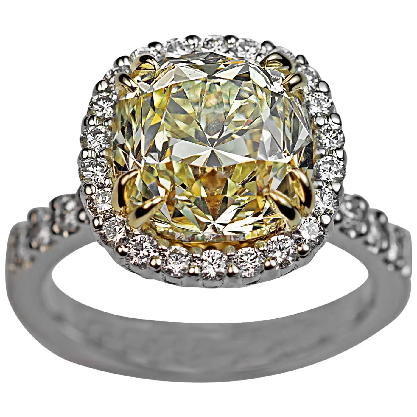 5.37 Carat GIA Fancy Light Yellow Cushion Cut Diamond Engagement Ring