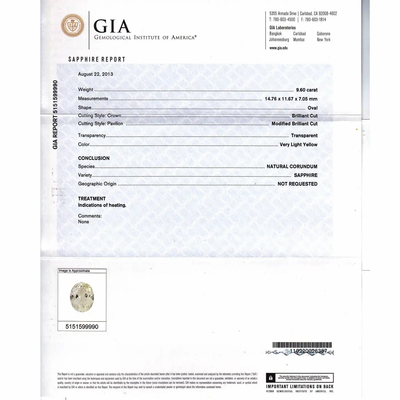 Lab Report Available: GIA 5151599990