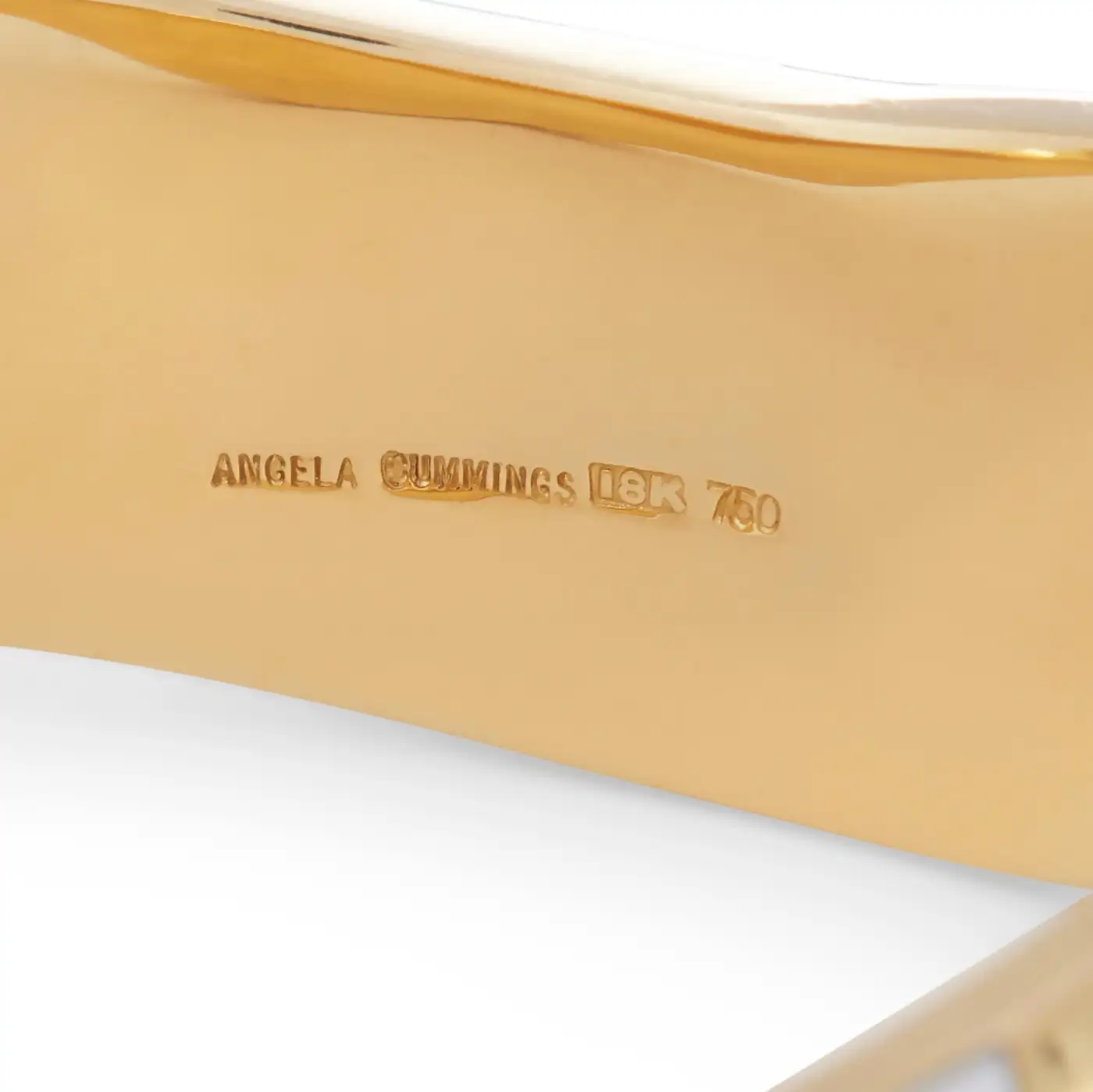 Brand: Angela Cummings Metal: 18k Yellow Gold Gemstone: Mother-of-Pearl Condition: Excellent Wear: Consistent with age and use Weight: 68.1 grammes Measurement: .70 inches wide, 6.5 inch internal circumference Date of Manufacture: 1980s Period: Late 20th Century