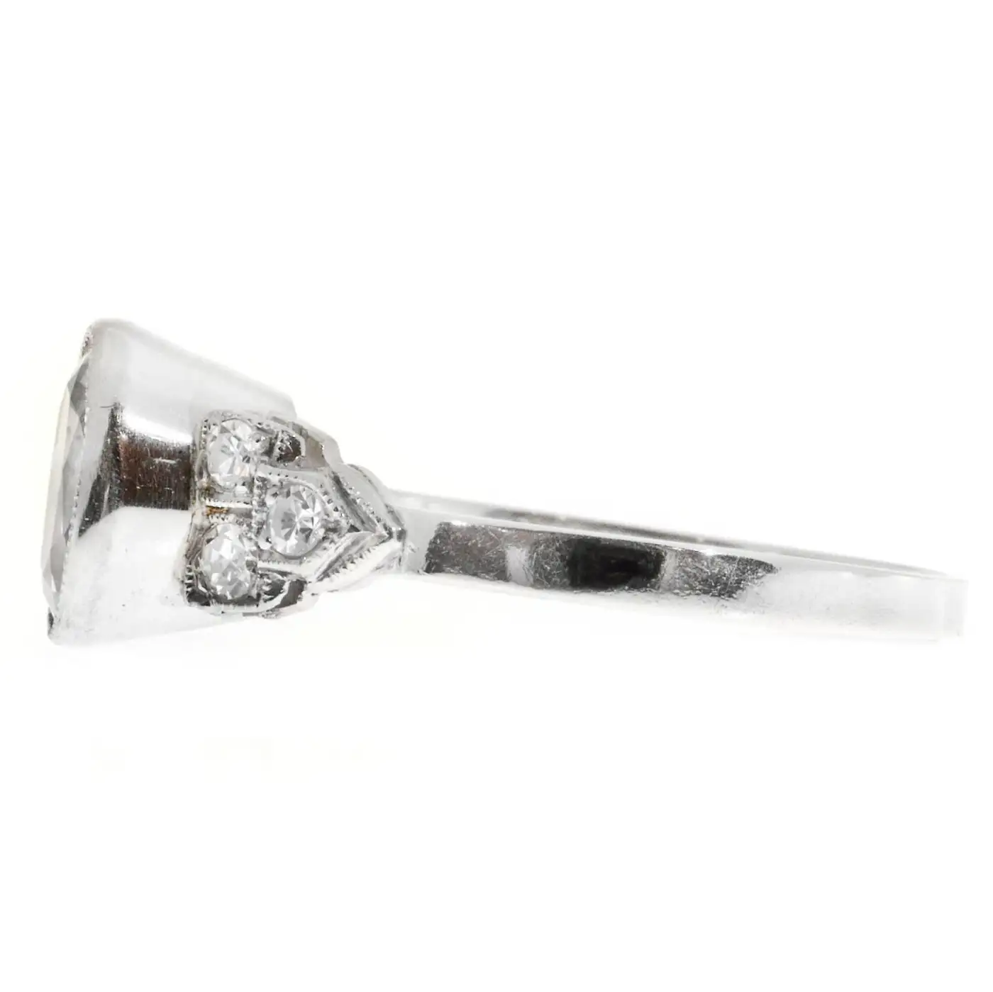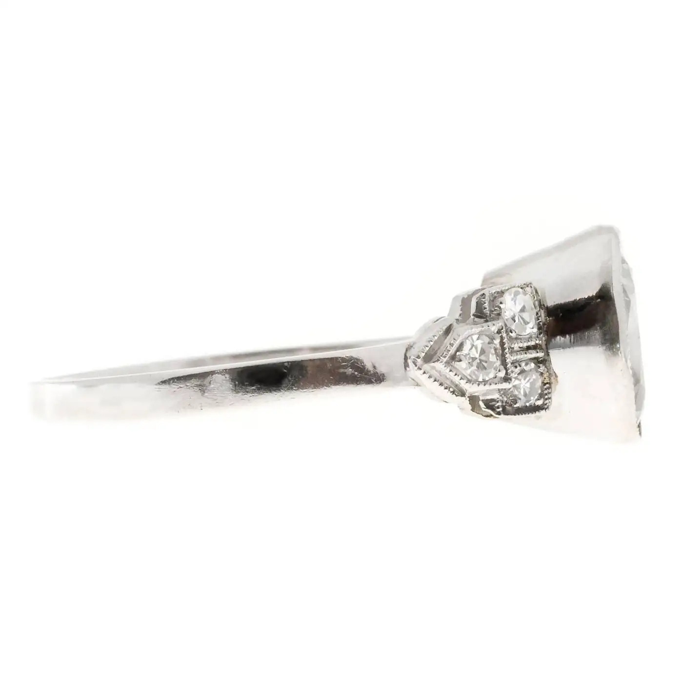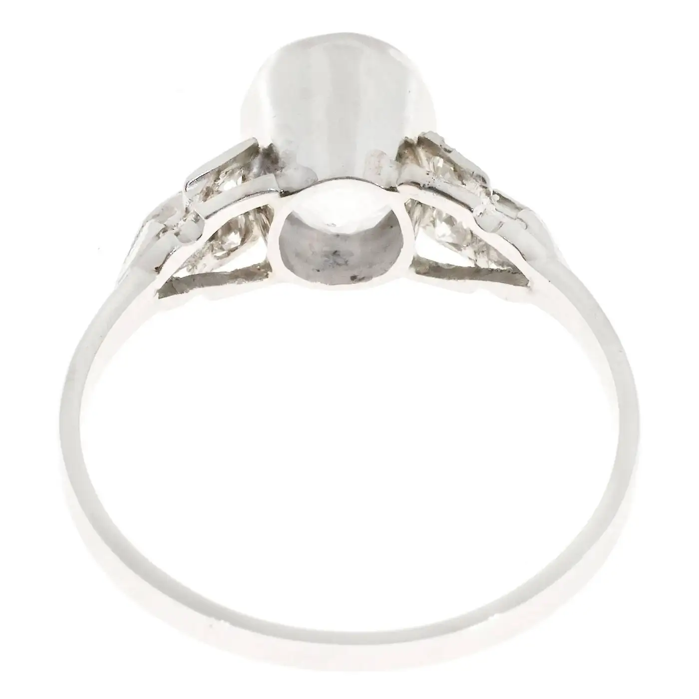 Oval very light pink blue Sapphire Art Deco engagement ring circa 1930 to 1940. In a platinum setting with 6 side diamonds.