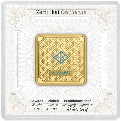Geiger Edelmetalle has as rich a history in the precious metals industry as you’ll find among any producer of gold and silver. The German company is family–owned and first began operations in 1218. The 13th century saw a boom in silver mining and refinement in Germany’s Saxony region, and Geiger continues that tradition today with stunning silver and gold bars for sale. Today, 1 oz Geiger Square Gold Bars are available to you online from Omega Bullion.