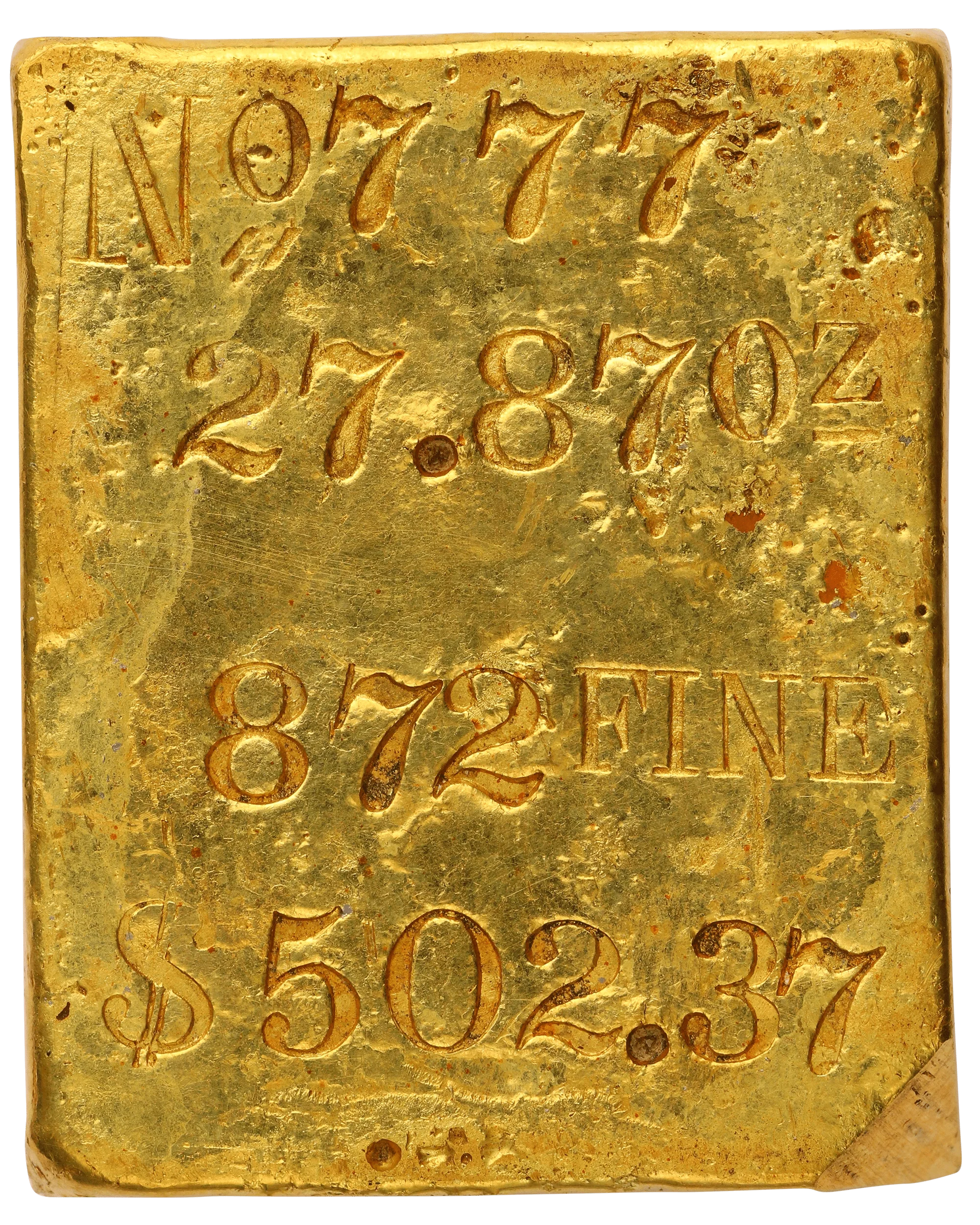 - The bar has .875 pure gold content in total.