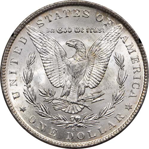The reverse side of the Morgan Silver Dollars comes with another design from George Morgan. This design is his interpretation of the heraldic eagle of the United States. In it, the bald eagle is in front-facing relief with the arrows of war and olive branch of peace in its talons.