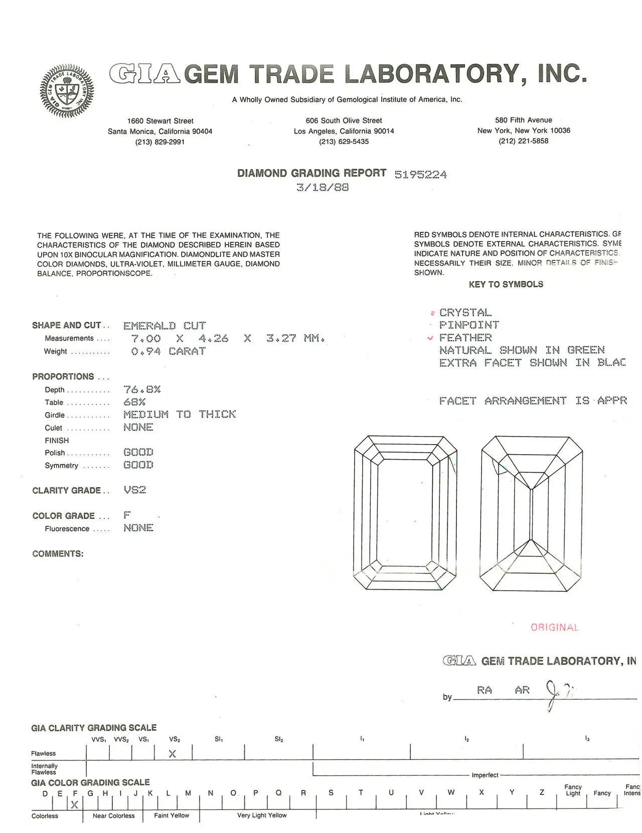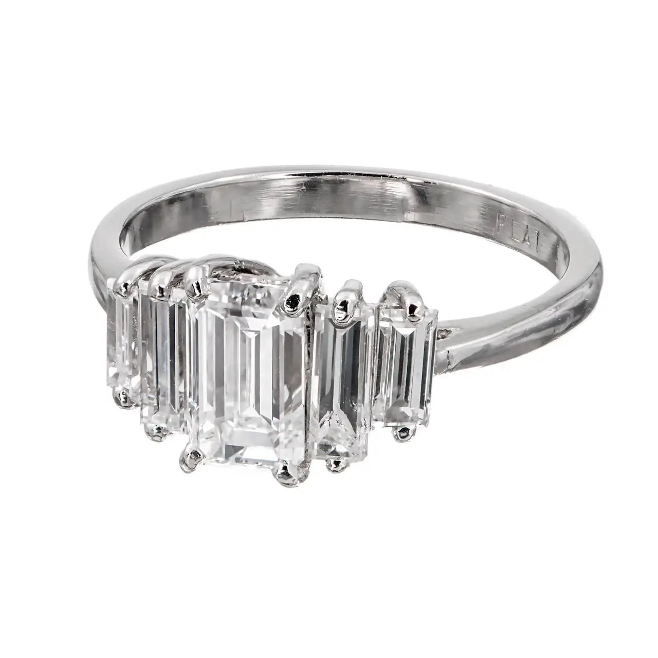 Emerald Cut Diamond Platinum Engagement Ring GIA Certified .94 Carat