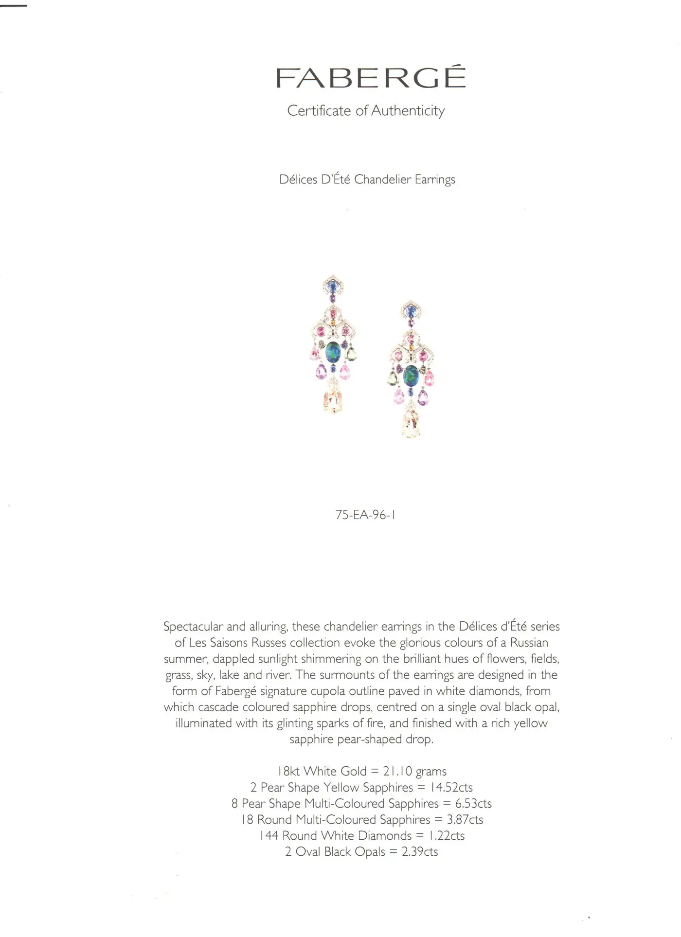 Fabergé Délices D’Été Collection Diamond Sapphire Black Opal Earrings