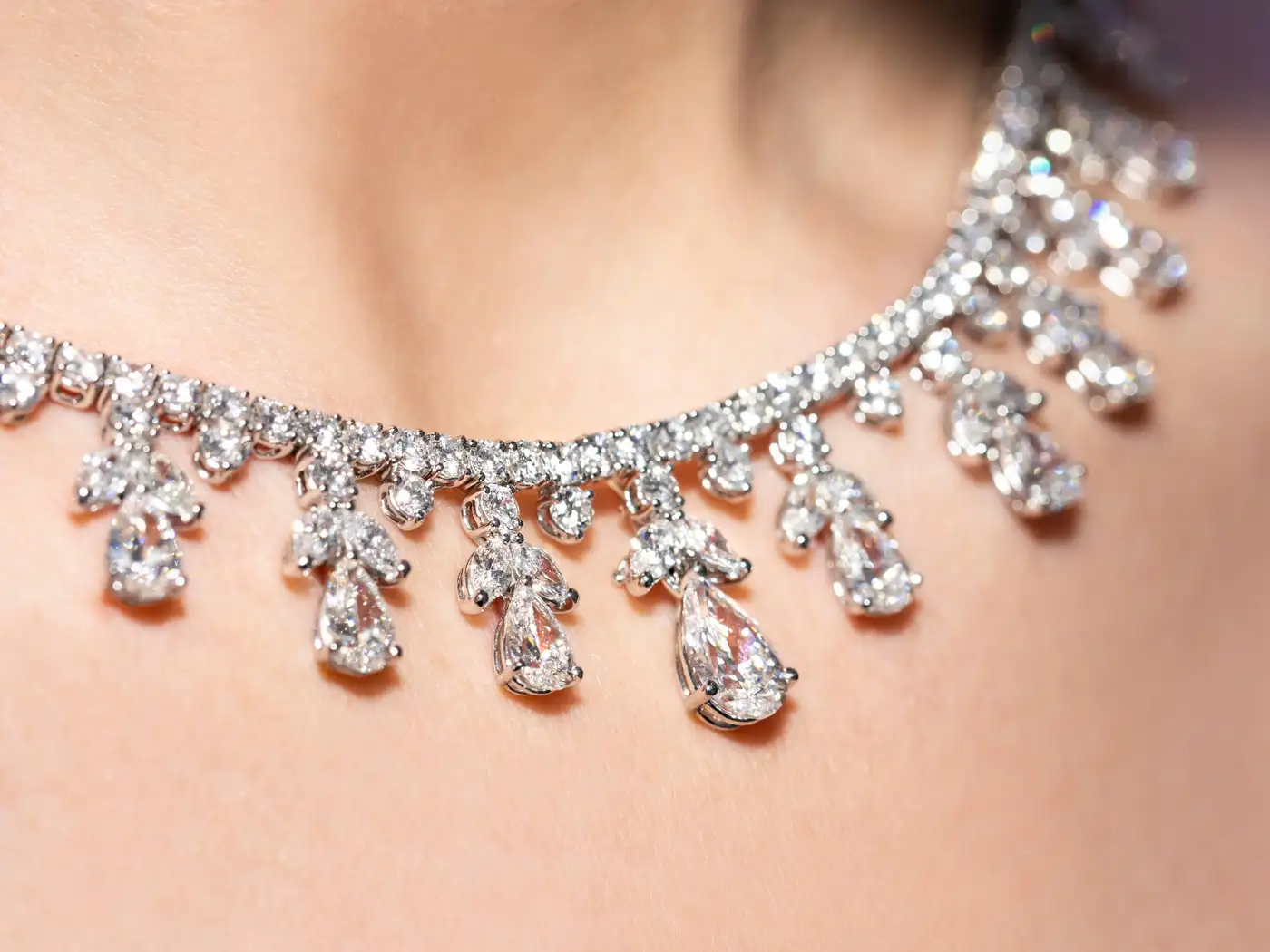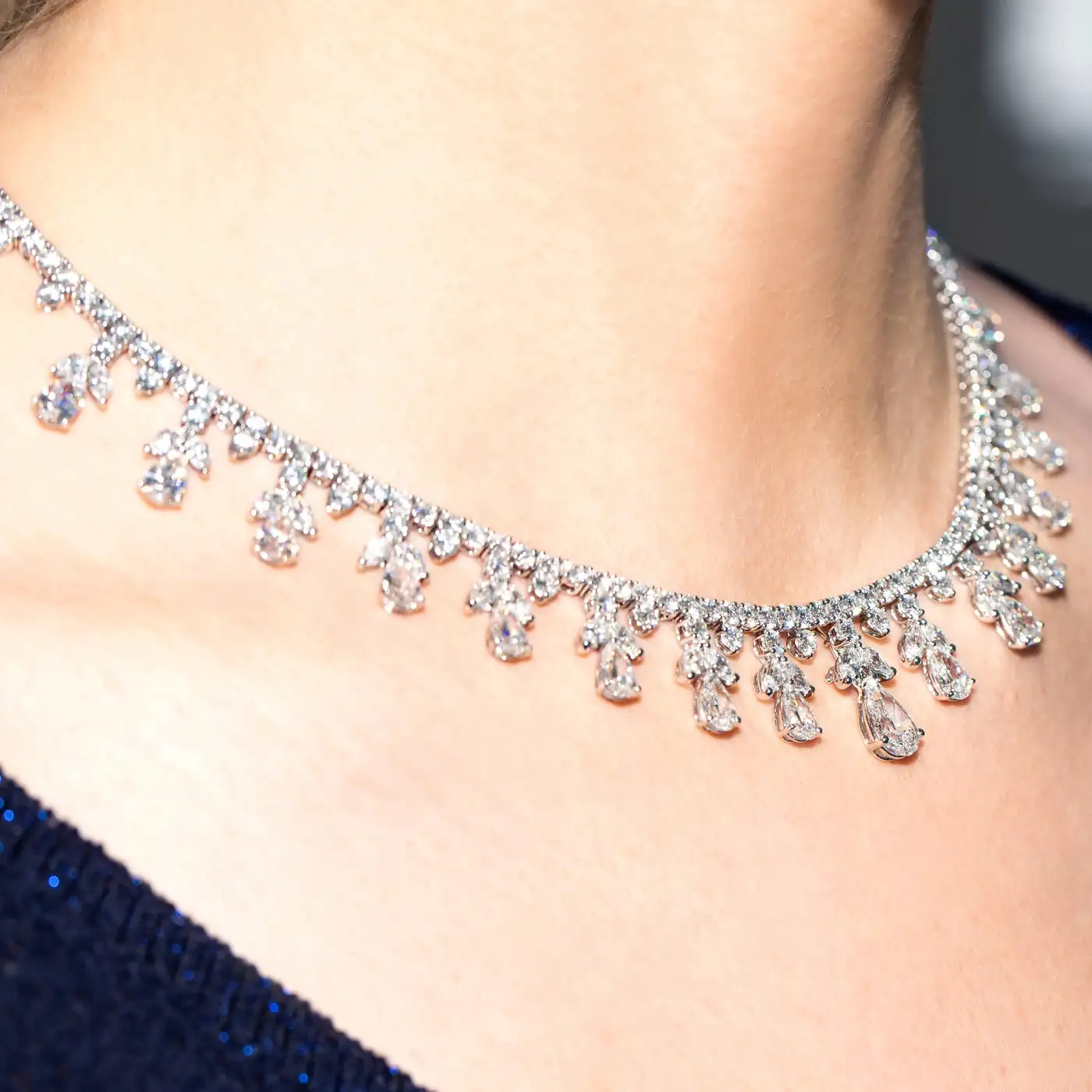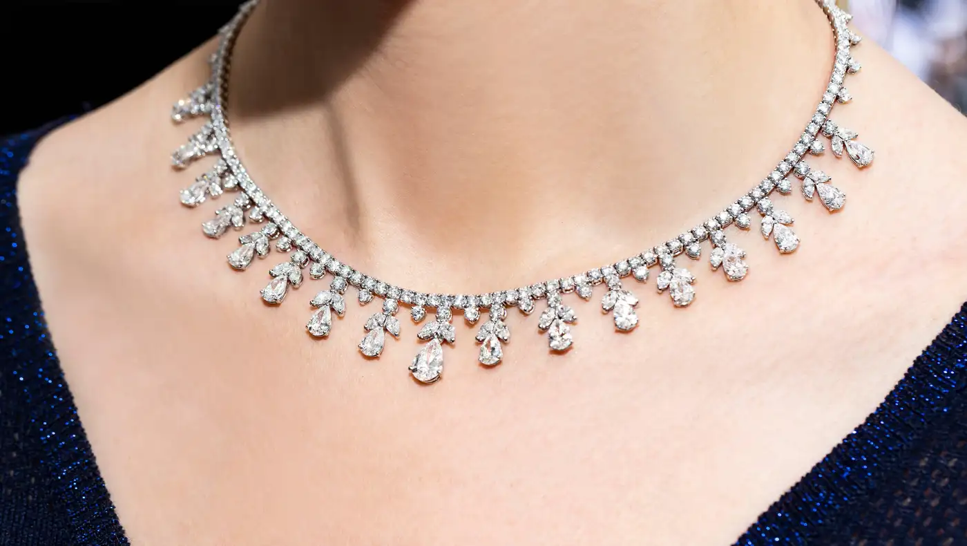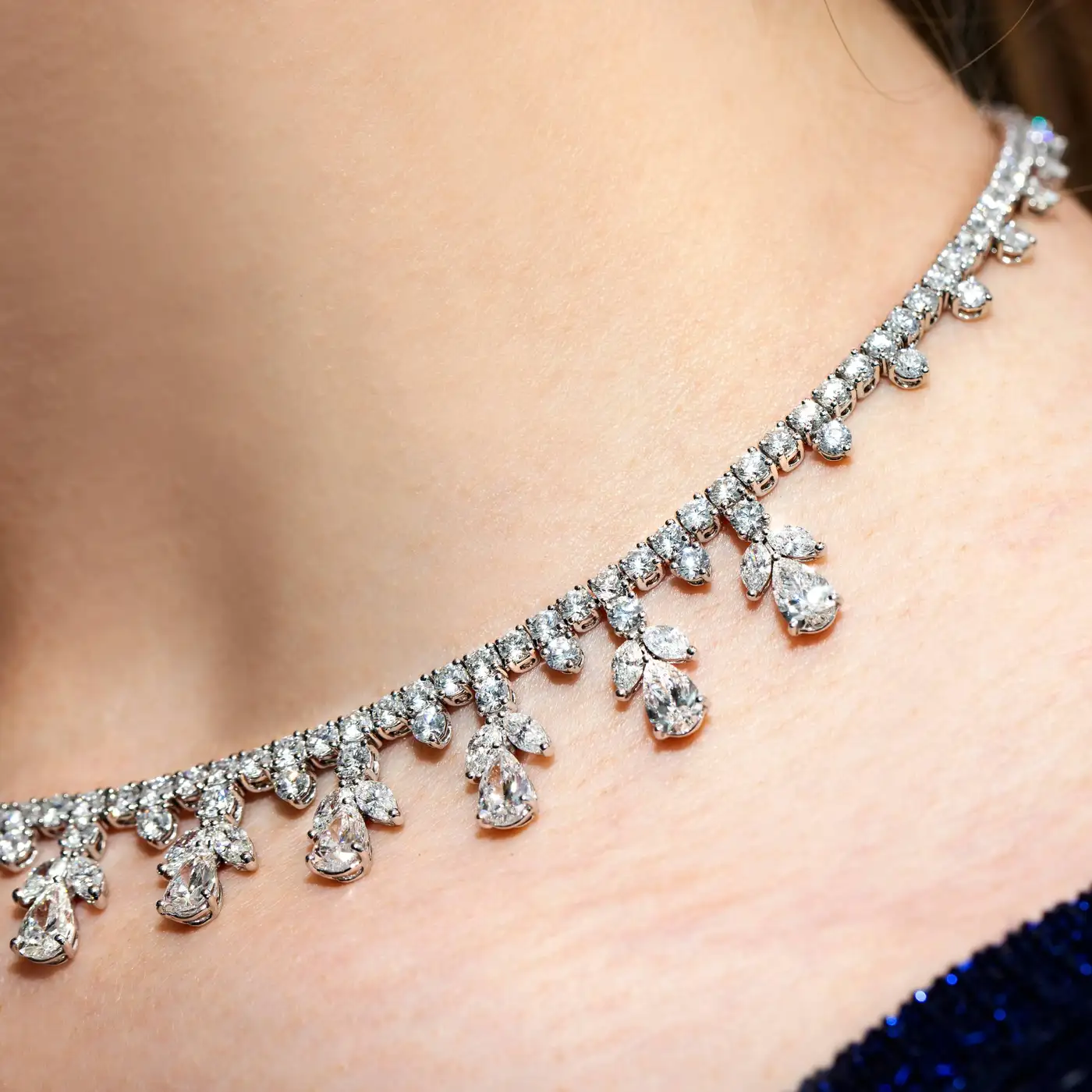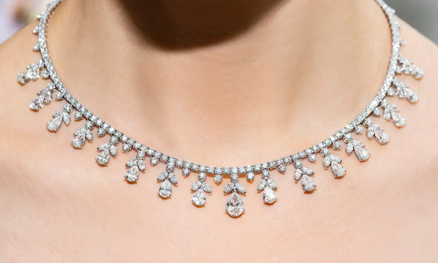 Fancy Pear Marquise Shaped Diamond Tiara Necklace GIA Certified 32.03 Carat