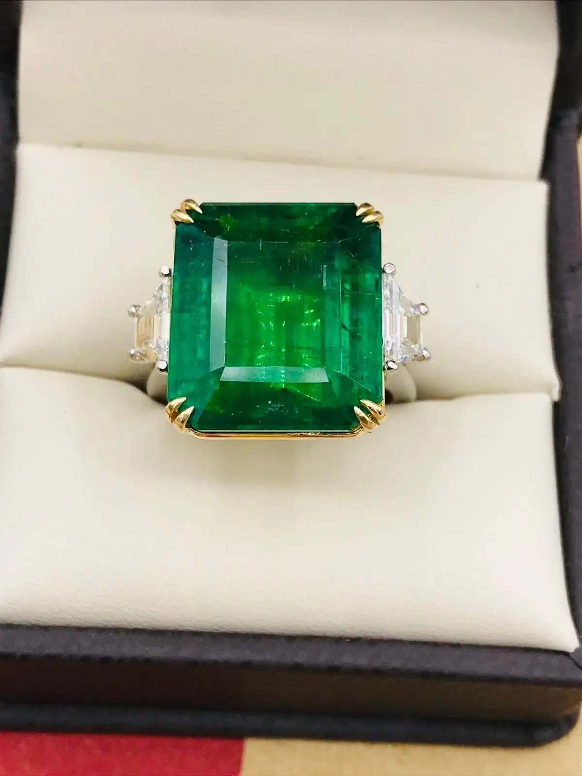 An extraordinary GIA certified 4 carat emerald cut diamond ring. The main stone is an e colour VVS2 Clarity 100% Eye clean stone Excellent lustre and performance None Fluo An excellent proportion and performance.