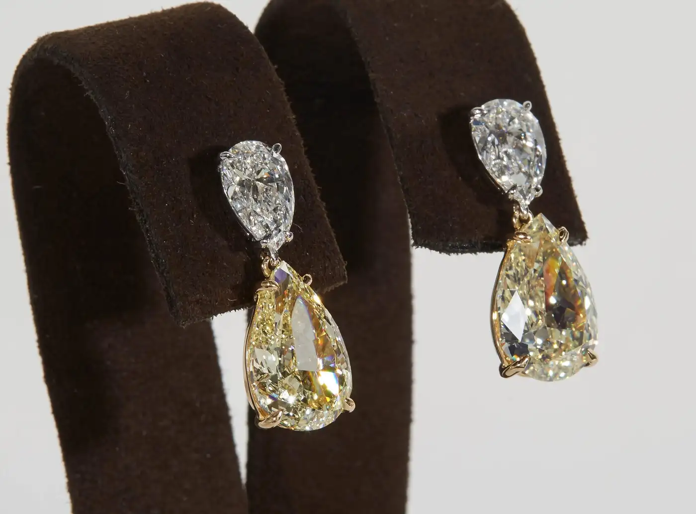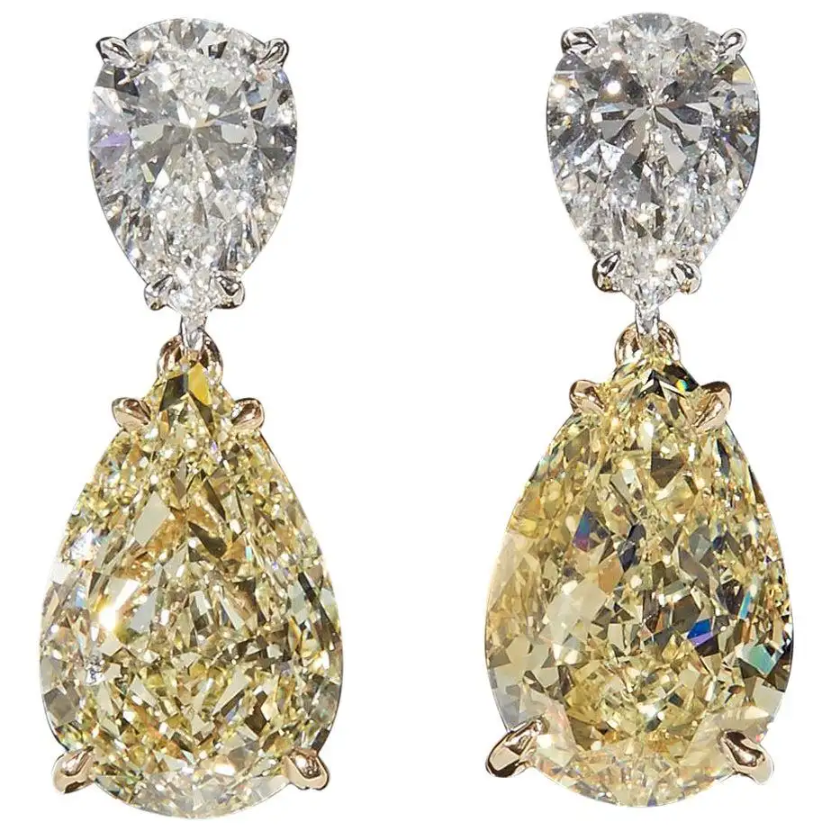 GIA Yellow and White Diamond Earrings