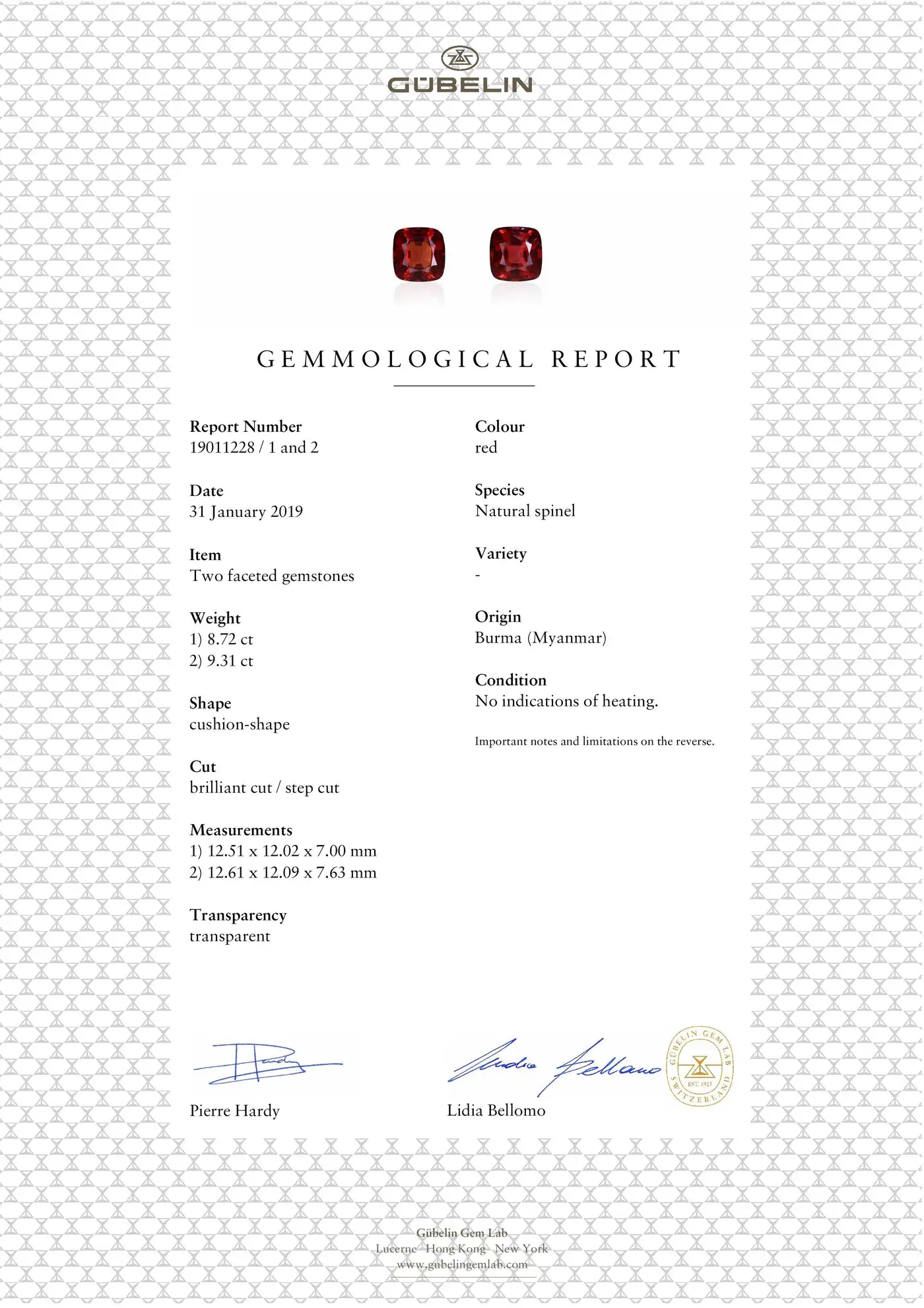 Lab Report Available: Gubelin 19011228