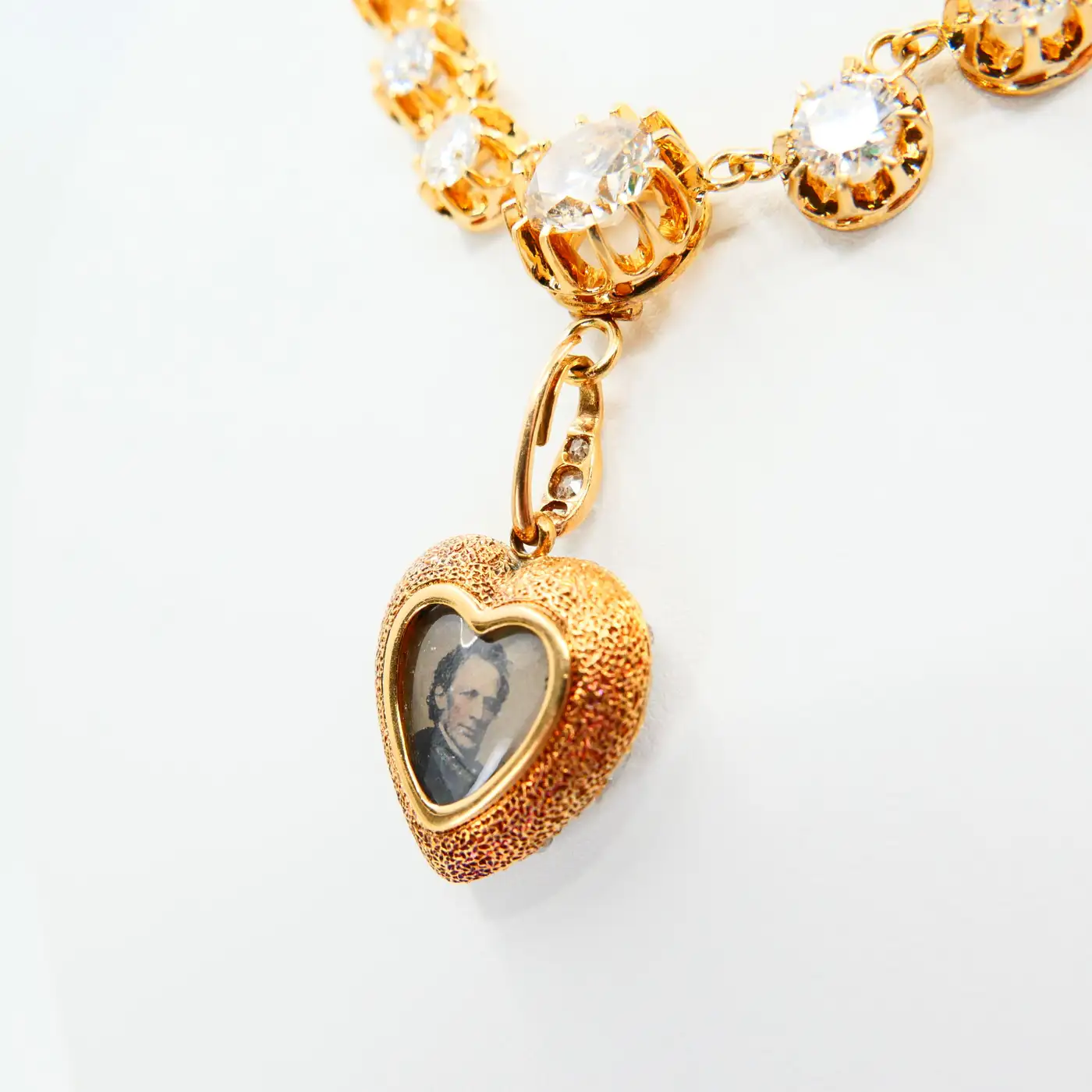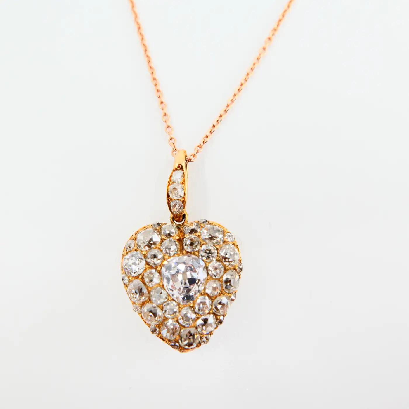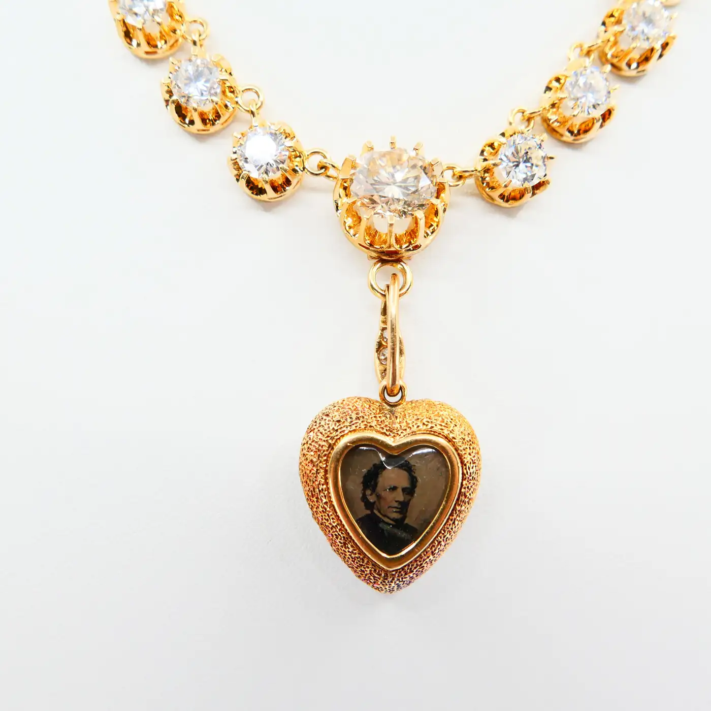 Important Old Mine Cut Heart Locket Pendant and Diamond Necklace, Certified
