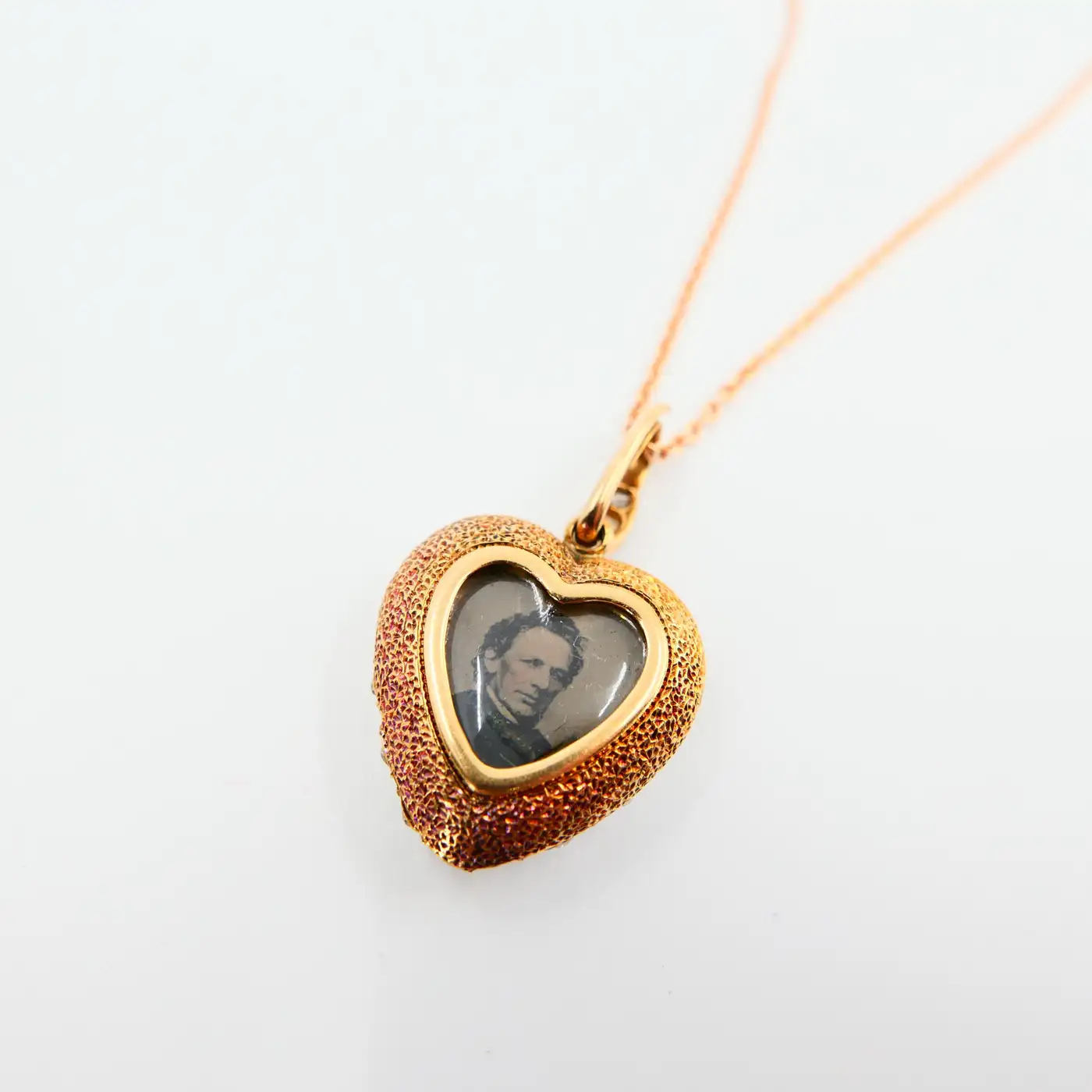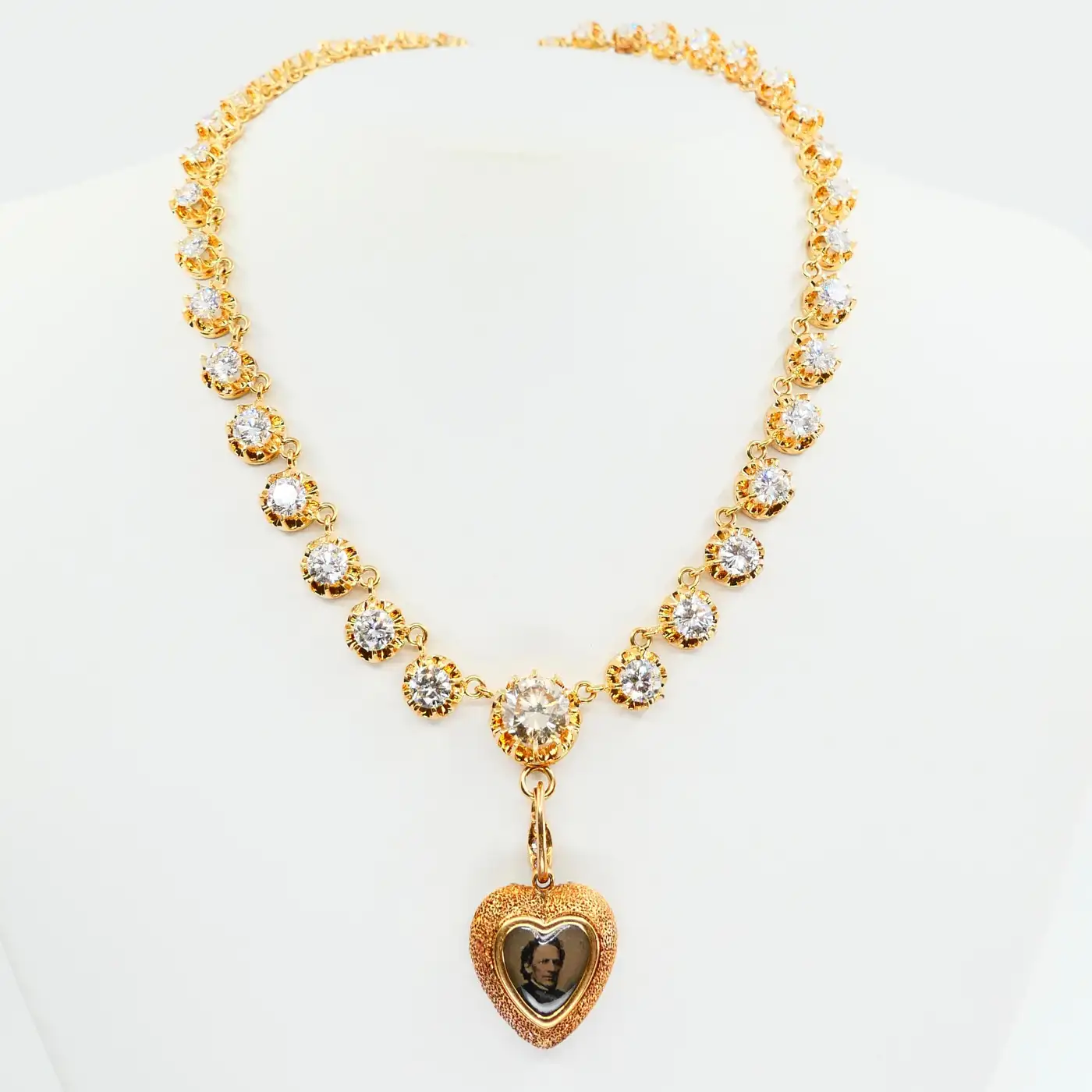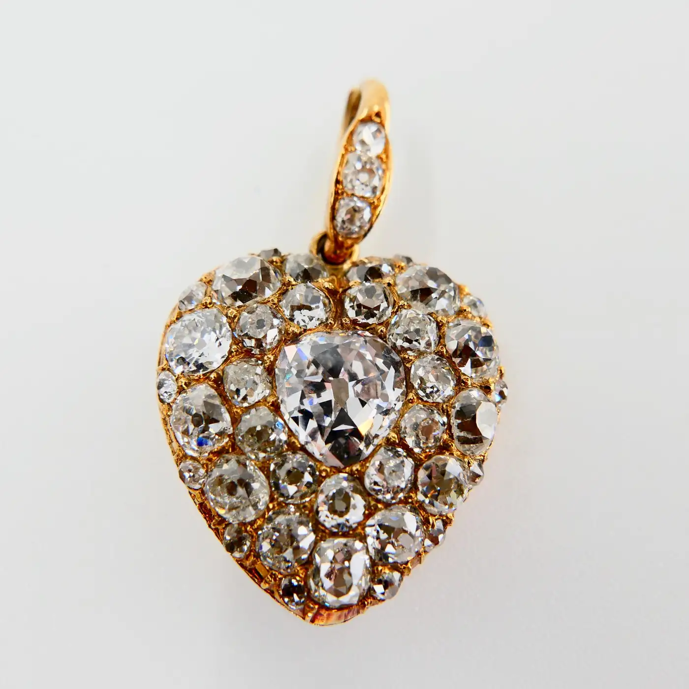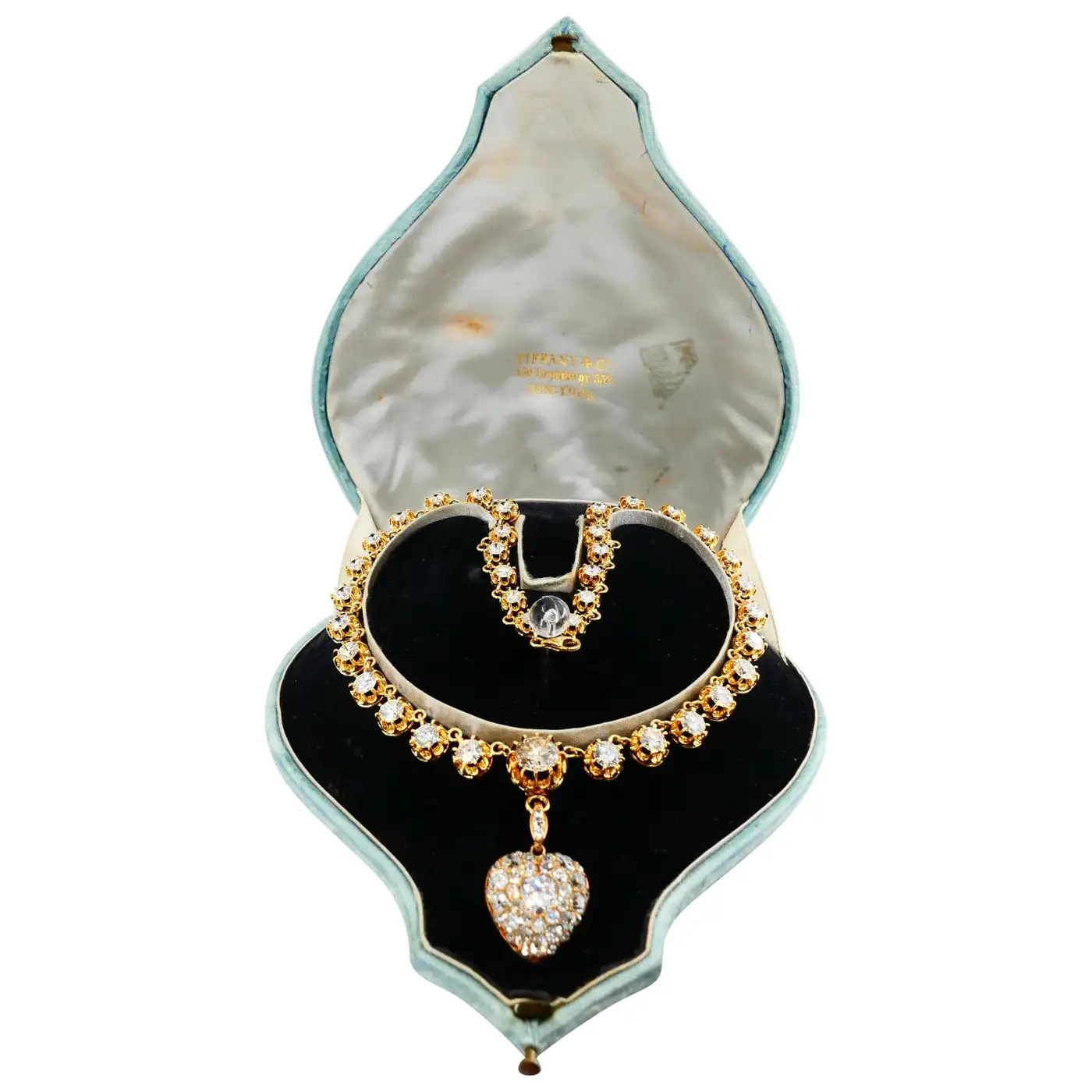 Important Old Mine Cut Heart Locket Pendant and Diamond Necklace, Certified