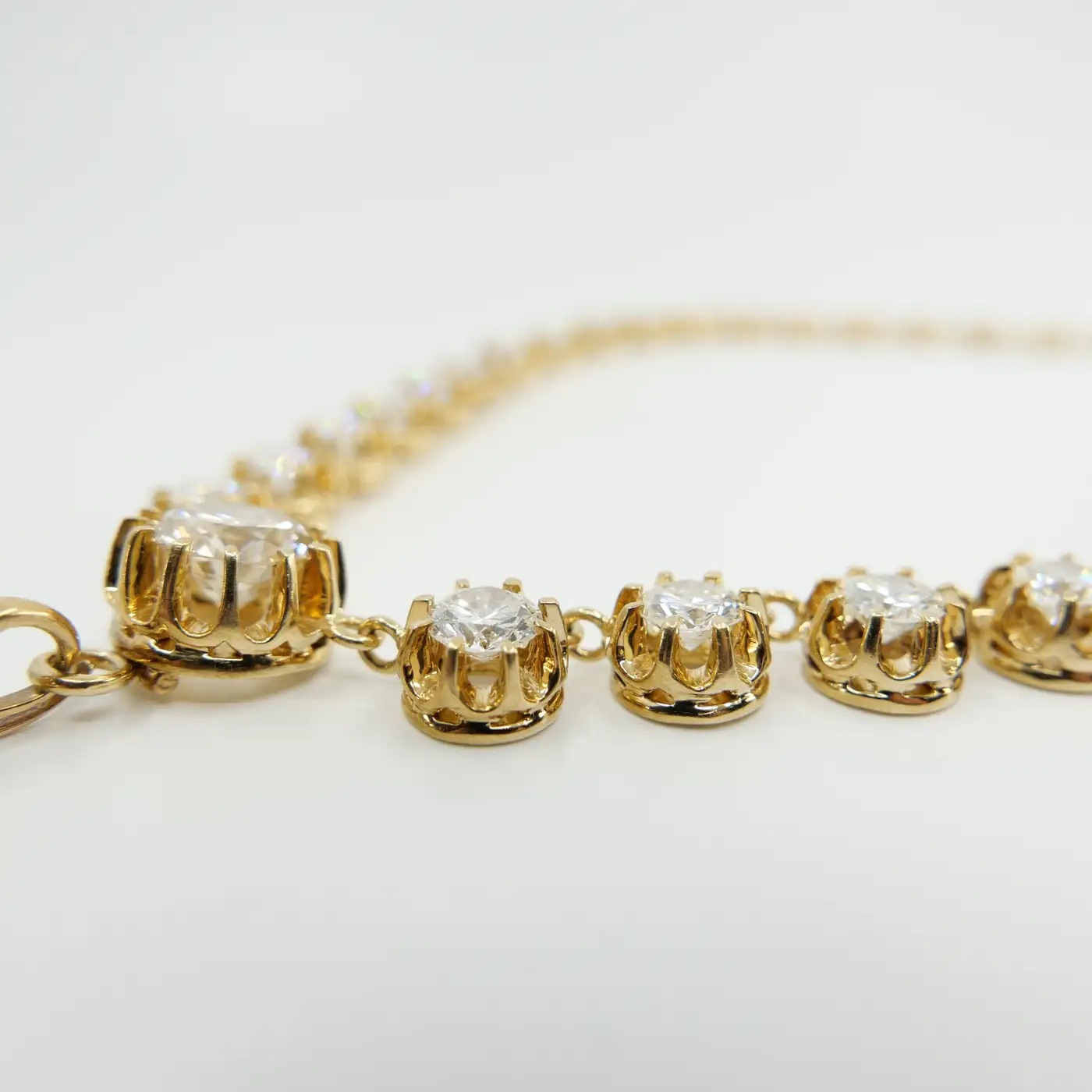 A piece of history. This very important necklace we bought from a major auction house over 10 years ago. We sold the original old mine cut necklace. The buyer was only interested in the necklace at that time. We then duplicated the original necklace but using modern round brilliant cut diamonds. The detachable pendant is all original true old mine cuts. The box is also original to the piece, however, the stamping was only on the necklace and not the pendant. We will just sell the item as a “non brand name” piece. The custom 15 inch necklace (circa 2006) is made of 18k rose gold. 37 diamonds totaling 17.34 Cts make up this necklace. The centre biggest diamond on the necklace is 2.8 cts. The original locket pendant (circa 1850) is made up of 39 antique old mine cut diamonds totaling 4.25 Cts. The centre old mine cut heart shaped diamond is 1.45 Cts by itself. You can wear this important necklace in many different ways. Just the necklace, with the pendant facing both ways, with a chain necklace and with the pendant facing both ways. We would like to sell this as a set with the original box. We would also entertain selling just the necklace or just the pendant. Please refer to the detailed photos. A collector would want this piece for their collection. This would be a great gift for that special someone.