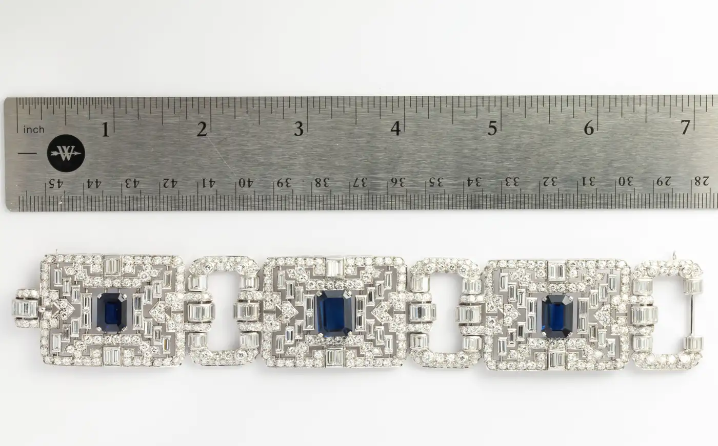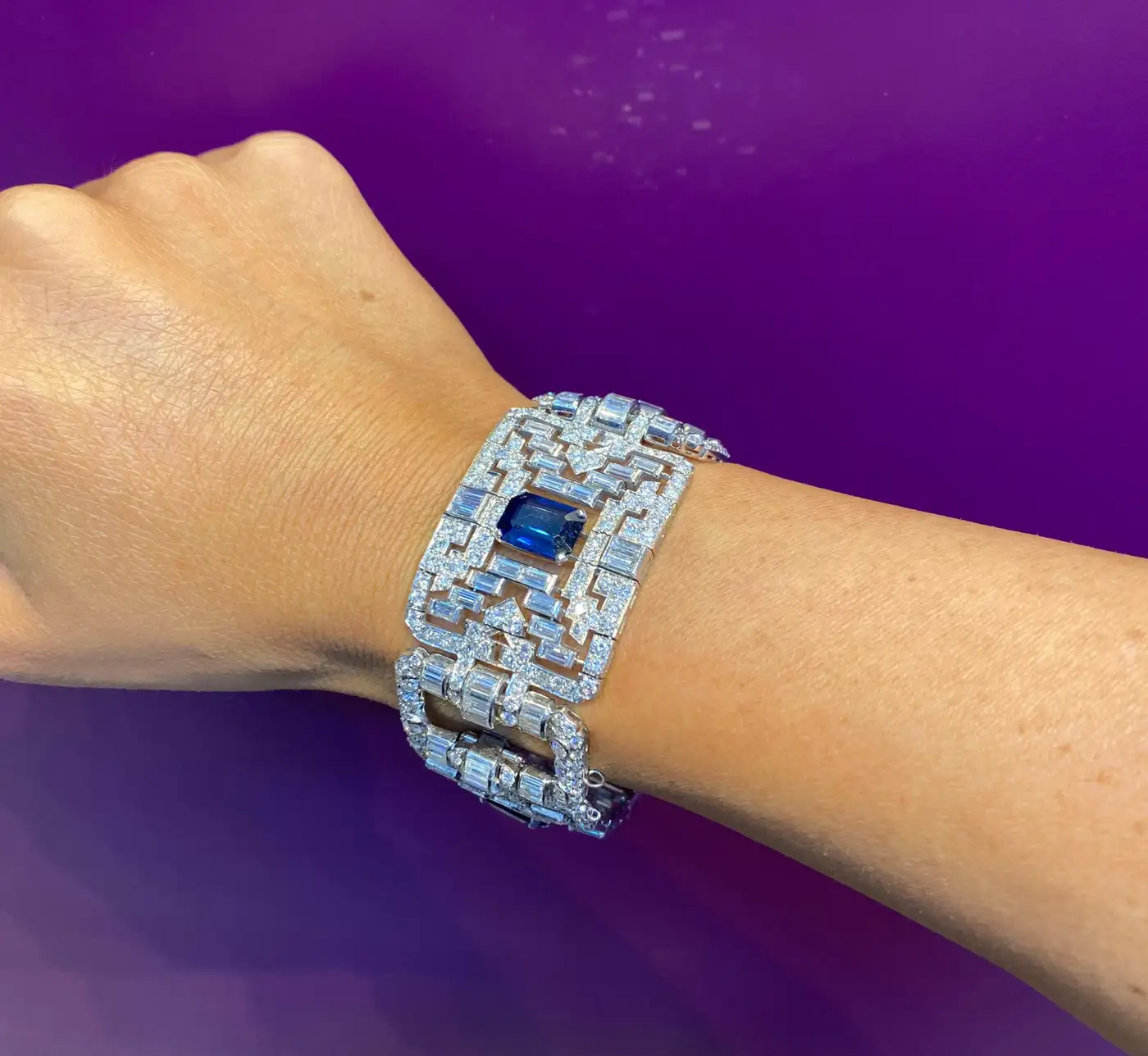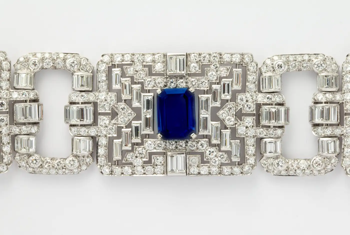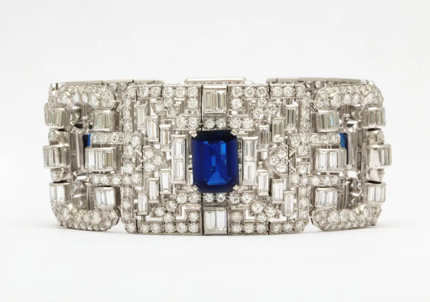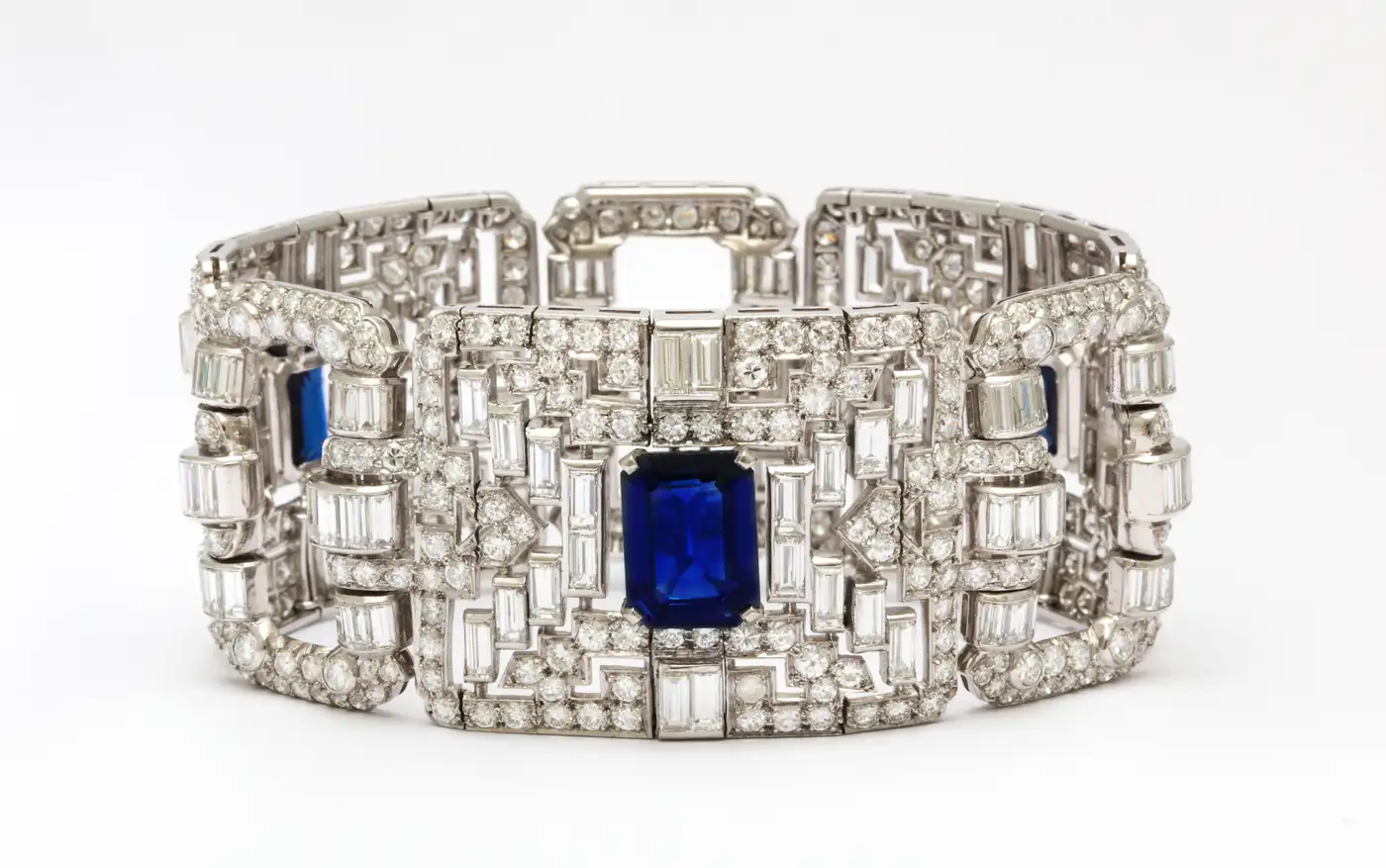 Important Wide Art Deco Diamond and Sapphire Bracelet