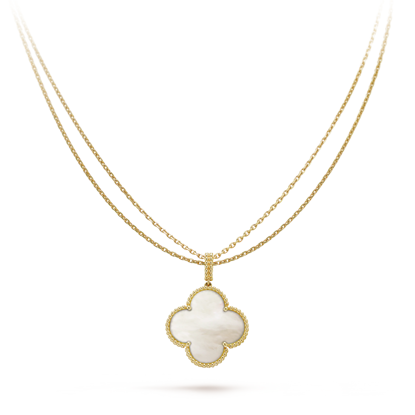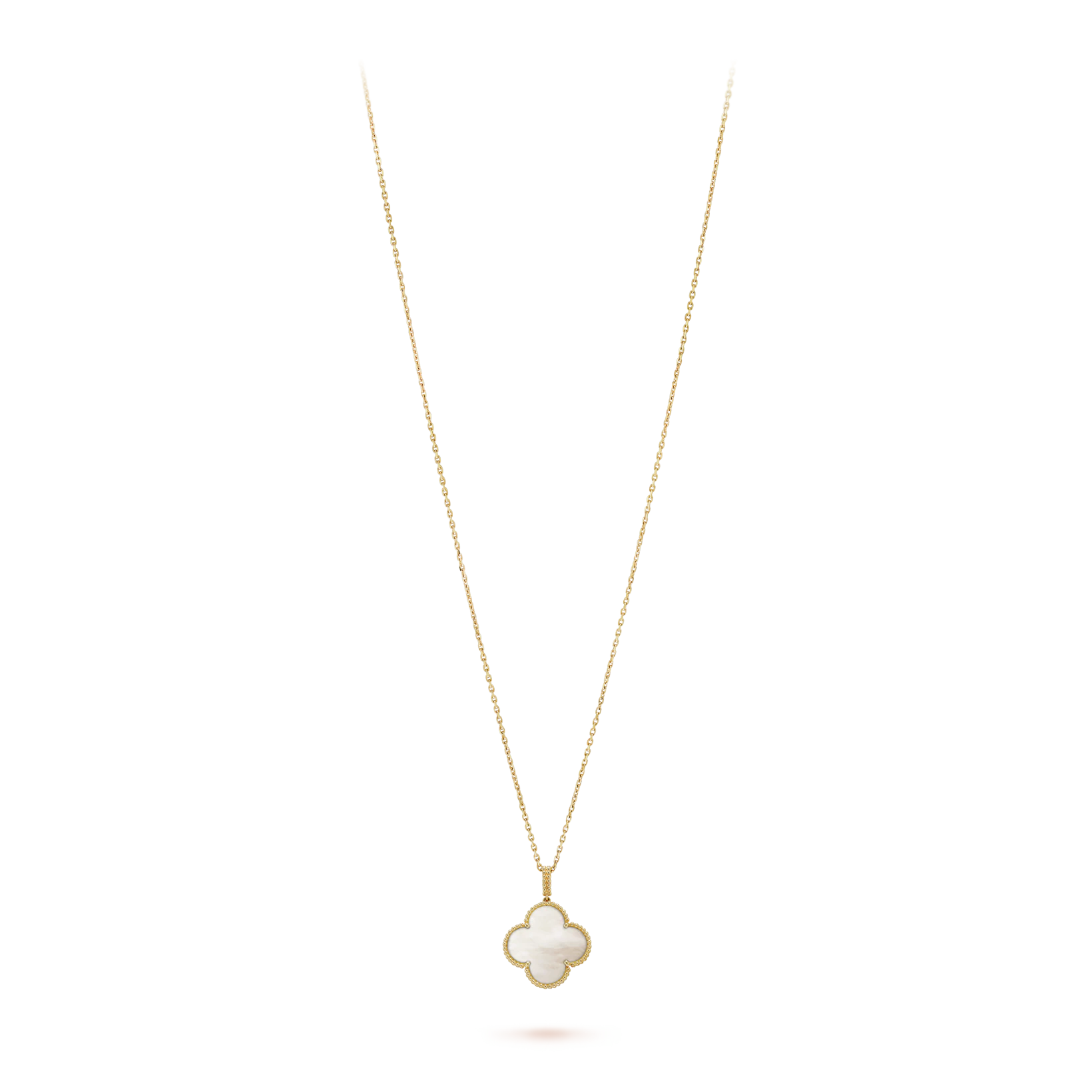 Magic Alhambra long necklace 1 motif, 18K yellow gold, white mother-of-pearl.