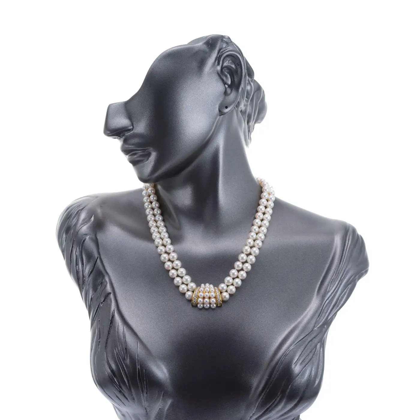 Be the first to review “Mikimoto Double Strand Cultured Pearl Diamond Gold Necklace”