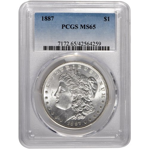 These Morgan Silver Dollar 5-Coin Sets come with Mint State 65 certifications from the PCGS. Each coin is packaged in its own protective plastic slab. Coins in this condition have above-average mint luster, a few scattered hairlines, and light, scattered contact marks with no flaws inside the primary focal points of the coin.