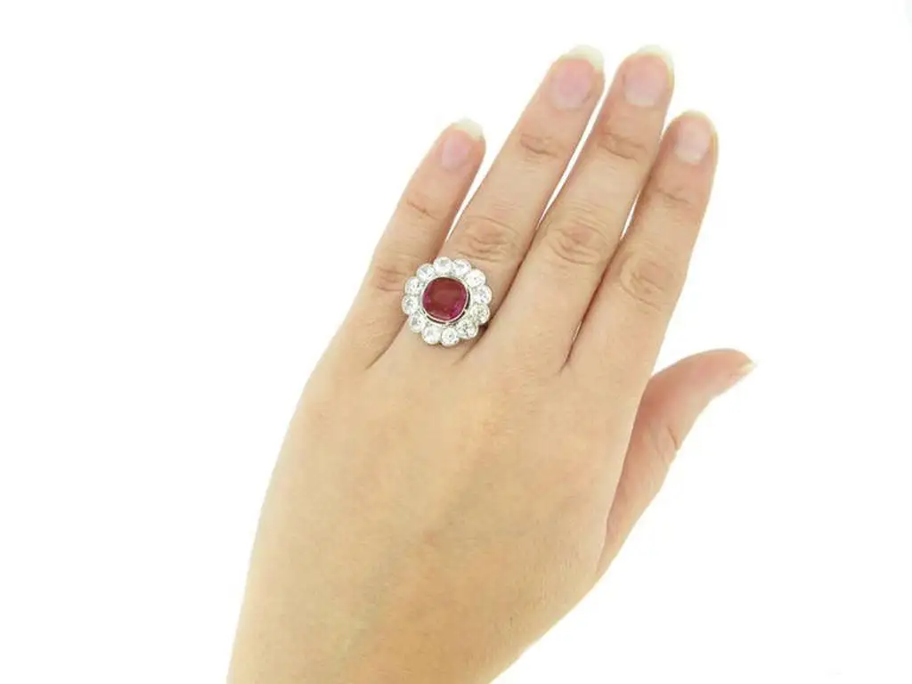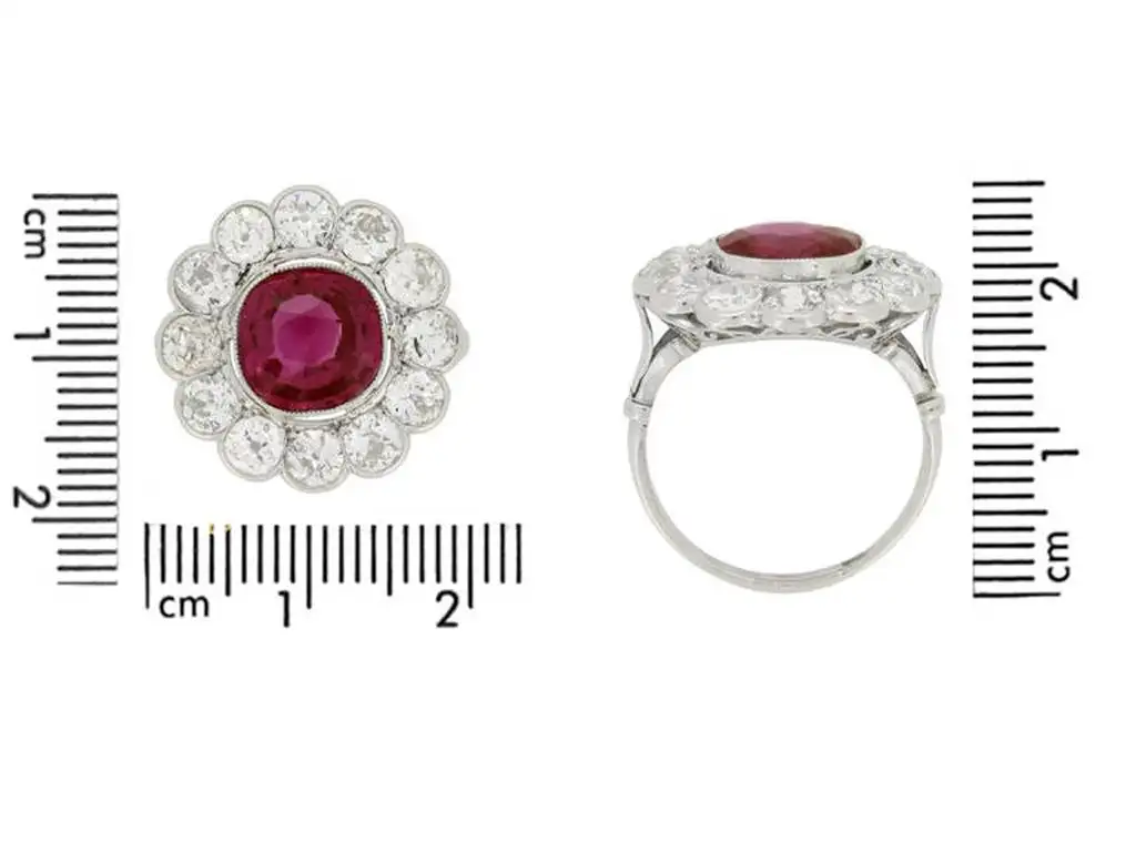 Natural unenhanced Burmese Ruby Diamond Platinum Cluster Ring