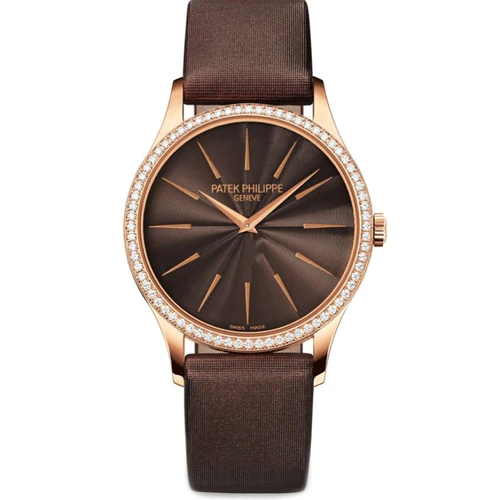 Patek Philippe Calatrava 18k Rose Gold Diamond Bezel 33mm Chocolate Brown Dial