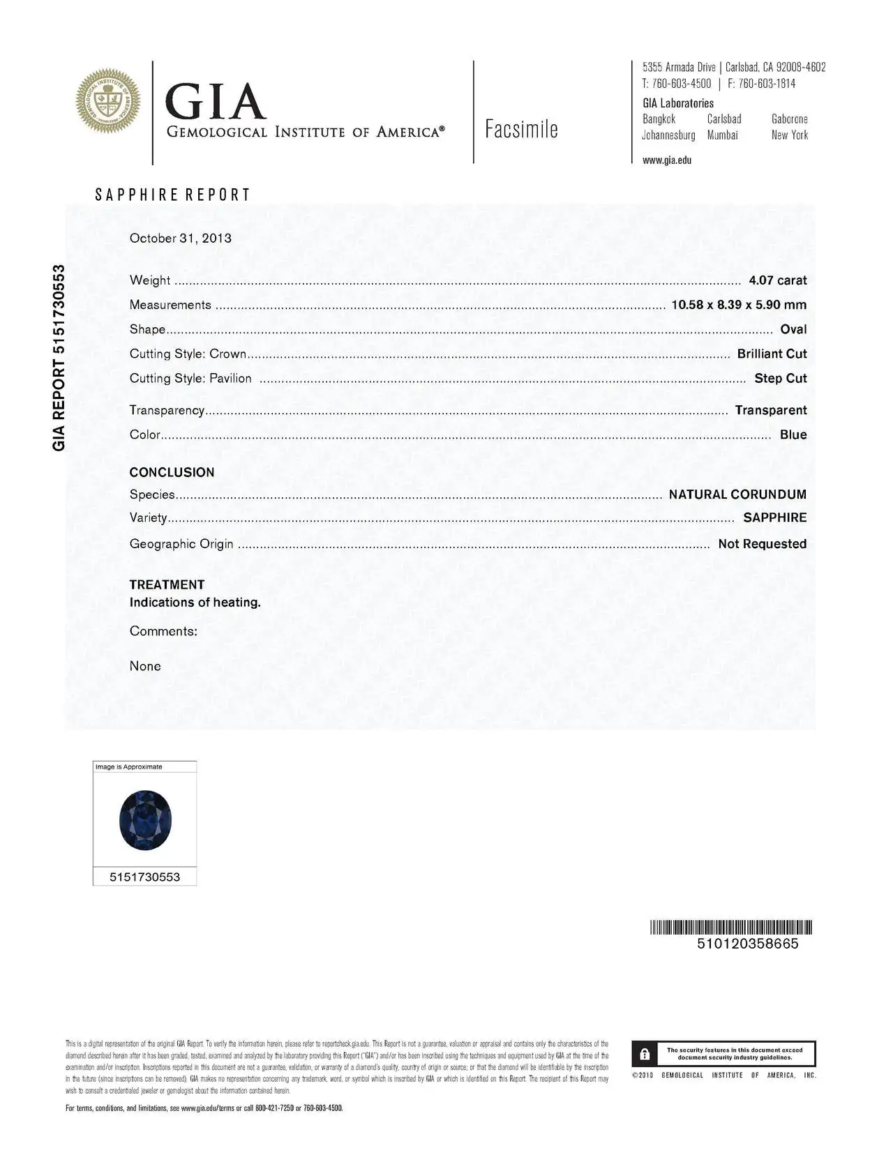 1 oval fine bright Cornflower blue Sapphire, approx. total weight 4.07ct, VS, 10.58 x 8.39 x 5.90mm, simple heat only, GIA certificate #5151730553 2 old European cut diamonds, approx. total weight 1.70ct, H to I, Size 6.5 and sizable 8.8 grammes Stamped: Plat Tested: Platinum Width at top: 10.5mm Height at top: 8.3mm Width at bottom: 2.7mm.