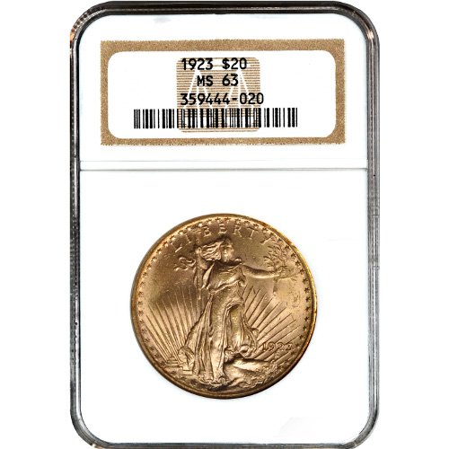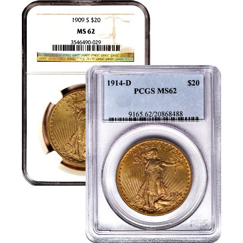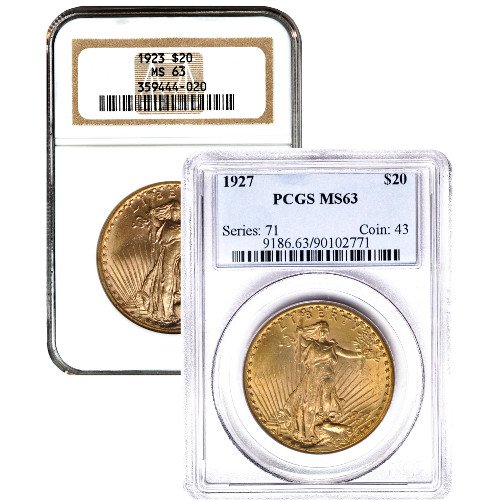 In this product listing you’ll receive a Pre-33 $20 Saint-Gaudens’ Gold Double Eagle Coin that is verified to be in Mint State 63 condition by either the Numismatic Guaranty Corporation or the Professional Coin Grading Service. Omega Bullion cannot guarantee the grading house label you’ll receive with purchase, as that is determined by availability when your order is processed for shipping.