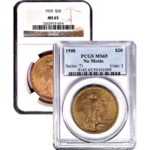 Pre-33 $20 Saint Gaudens Gold Double Eagle Coin MS65 (PCGS or NGC)