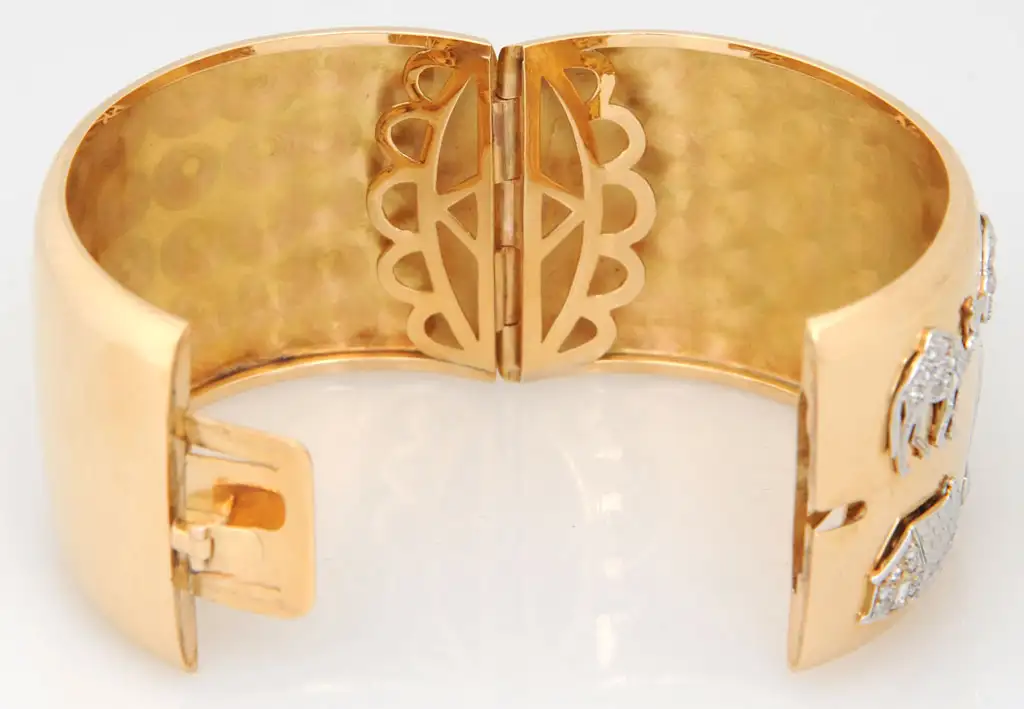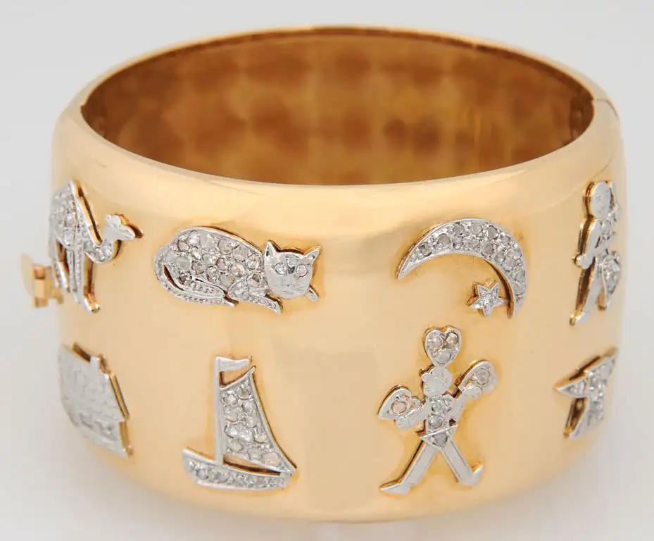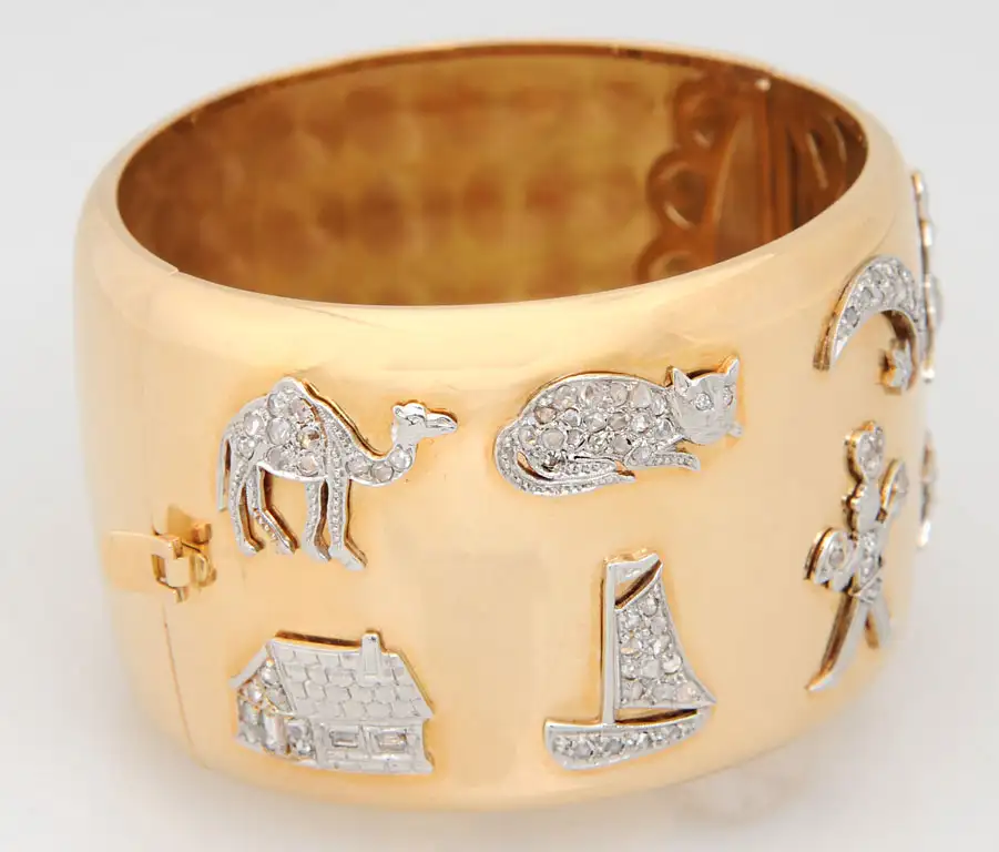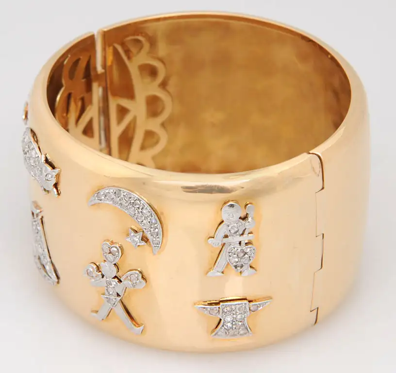 Retro Art Deco Diamond Platinum Charms Gold Bangle