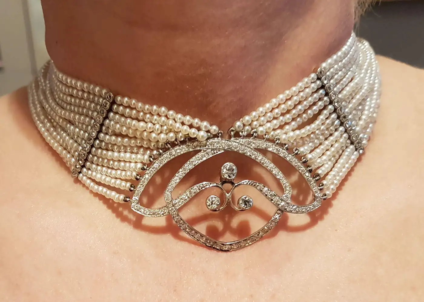 Seed Pearl Diamond Platinum Gold Choke Seed Pearl Diamond Platinum Gold Choke