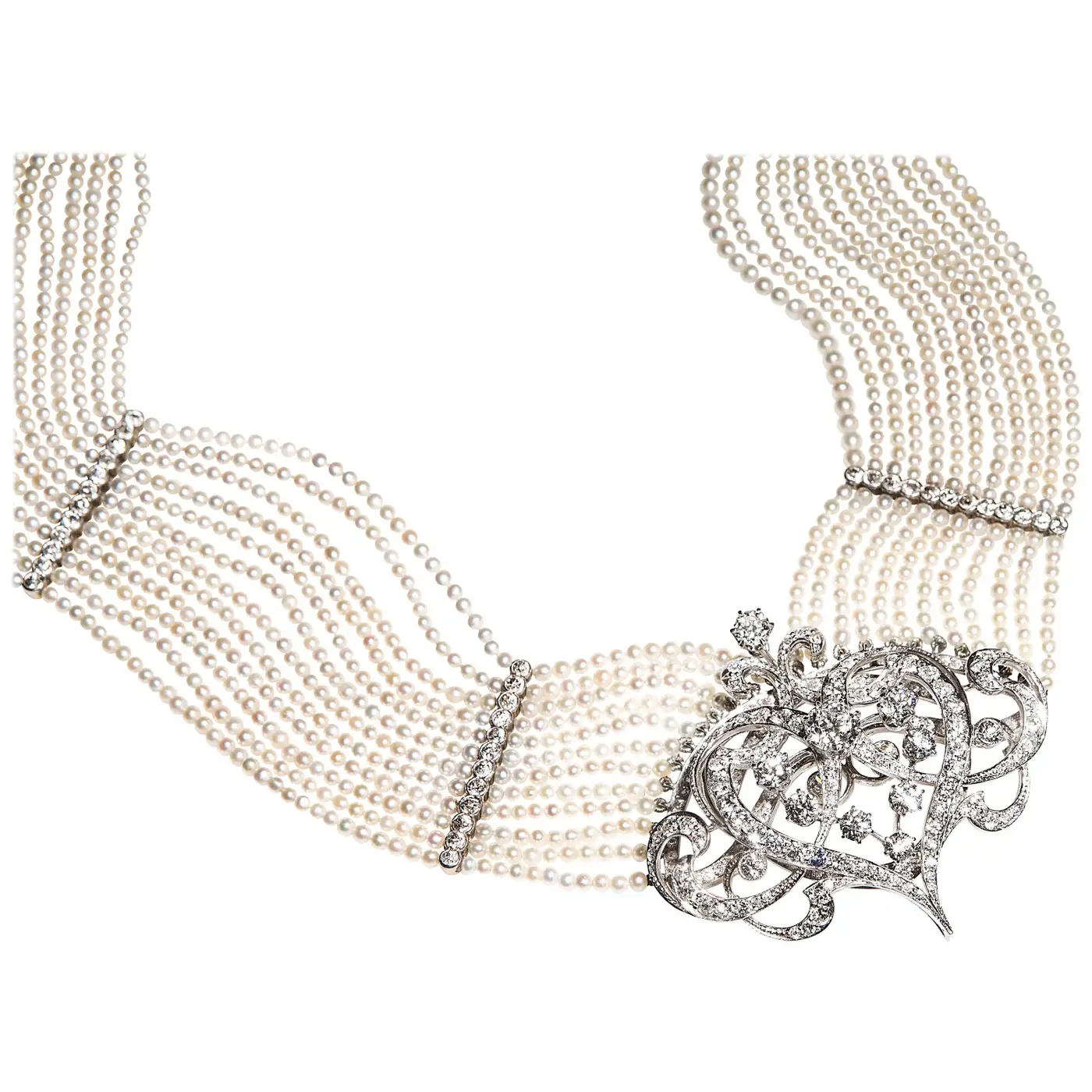 Seed Pearl Diamond Platinum Gold Choker Necklace
