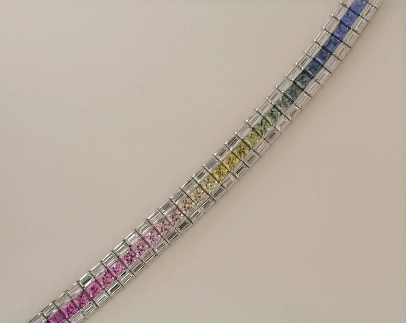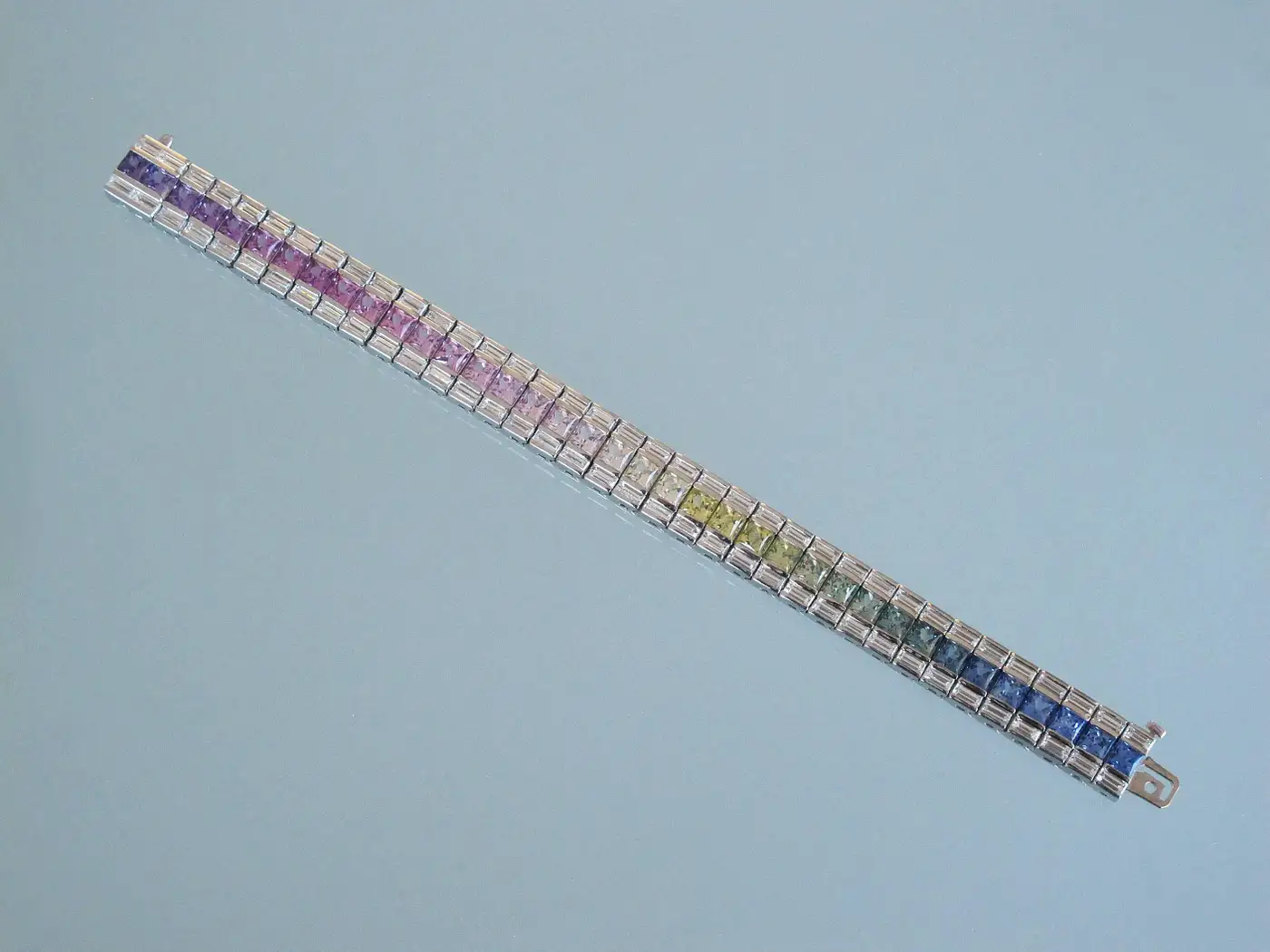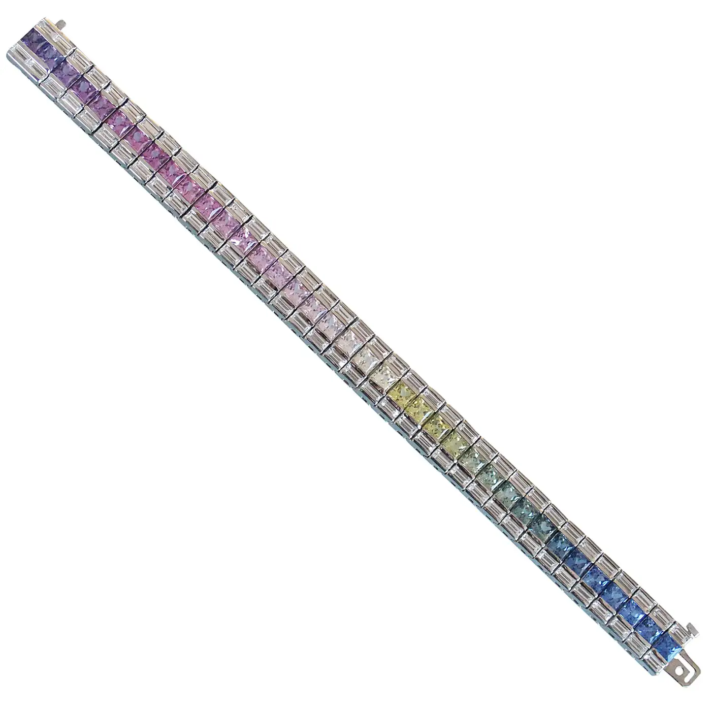 Stunning Fancy Rainbow Sapphire Platinum Line Bracelet