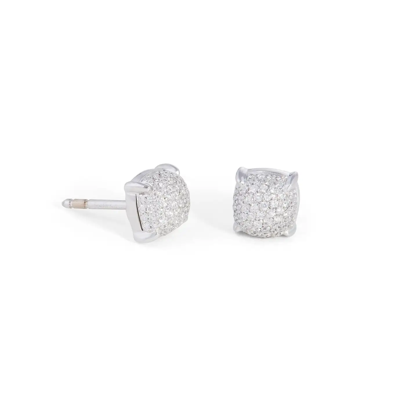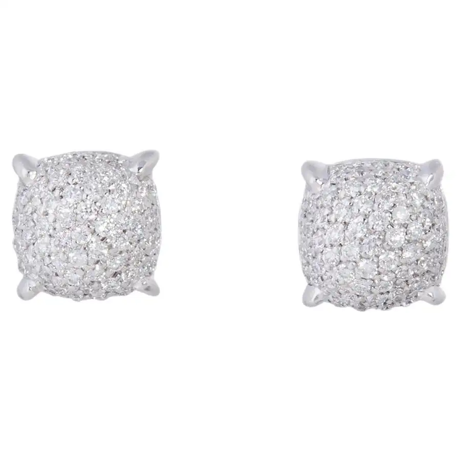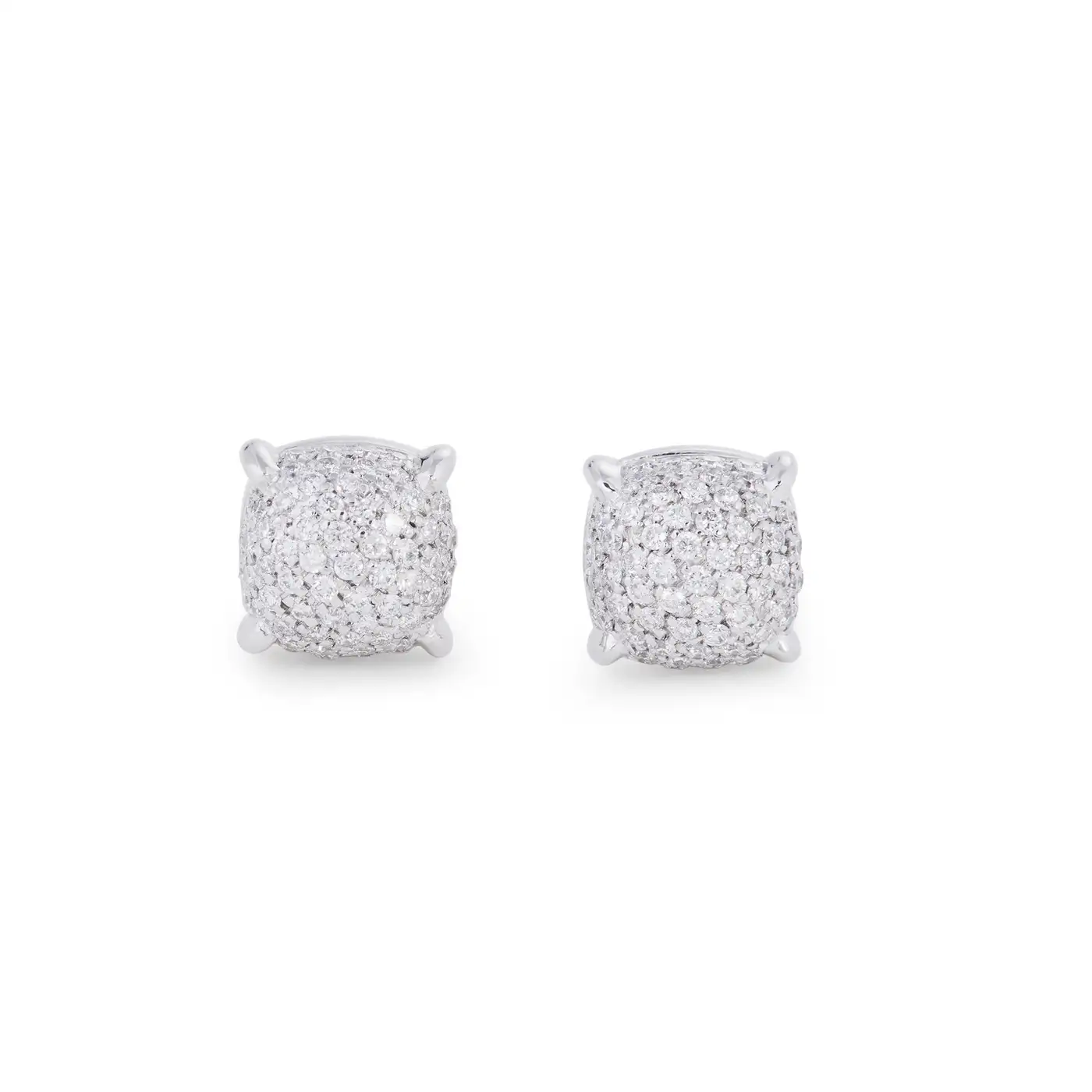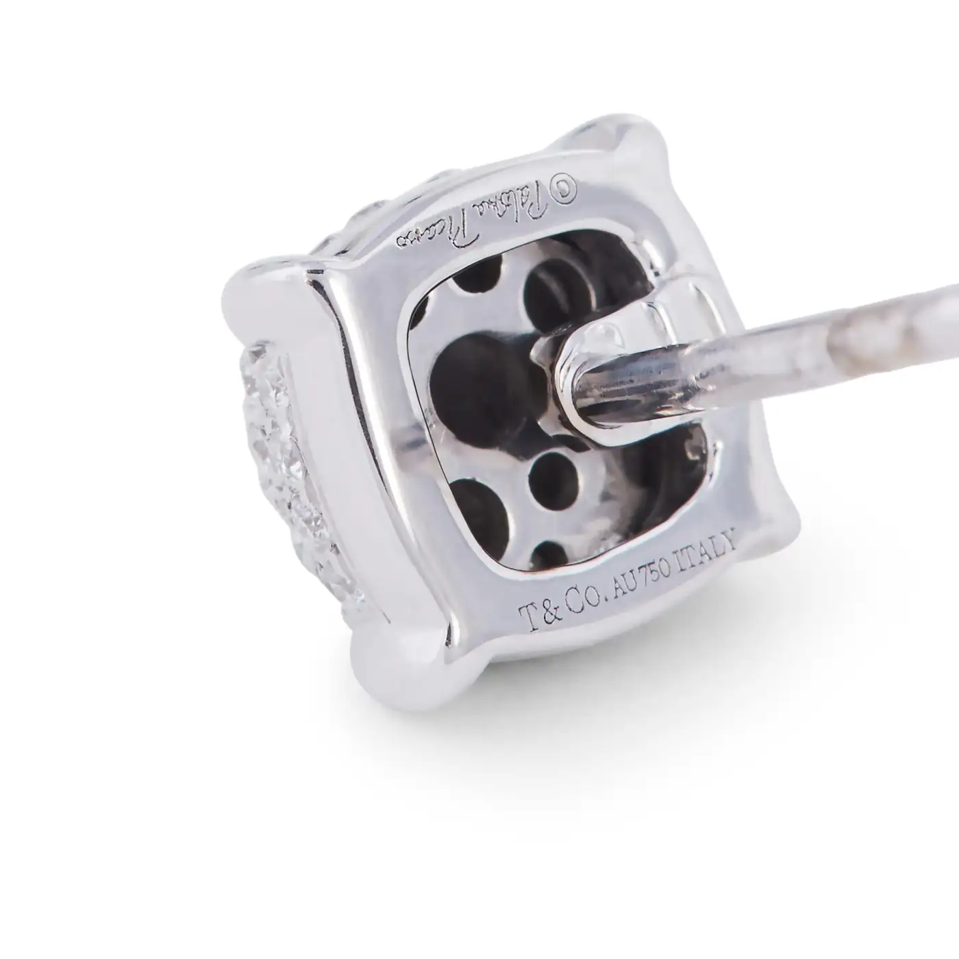 Authentic Tiffany & Co. Paloma’s Sugar Stacks earrings crafted in platinum. Resembling glittering sugar cubes, these sweet earrings are pave set with an estimated .33 carats of diamonds. The earrings measure 7.1mm x 7.1mm. Signed Palmo Picasso, T&Co., AU750, Italy.