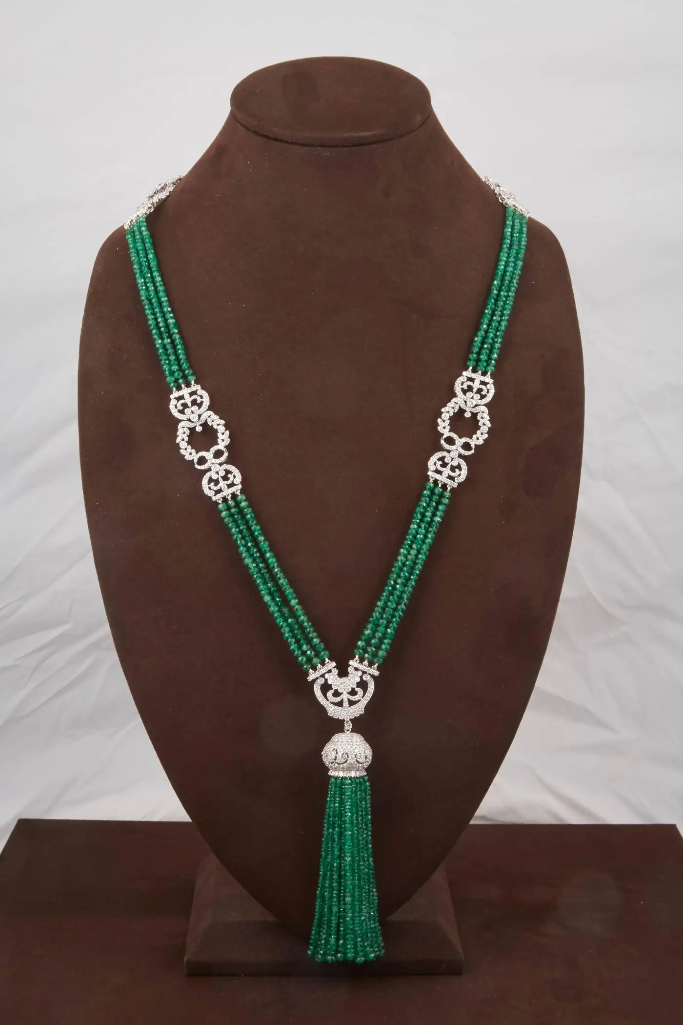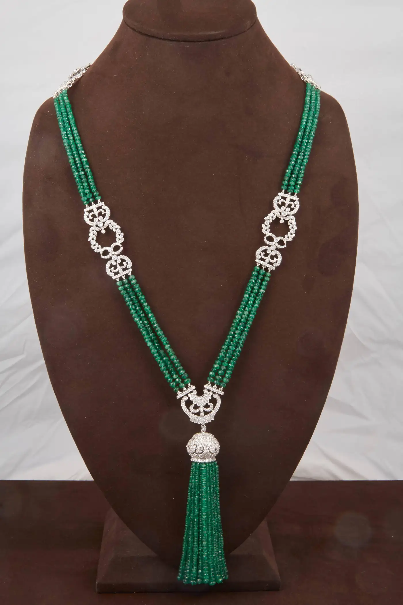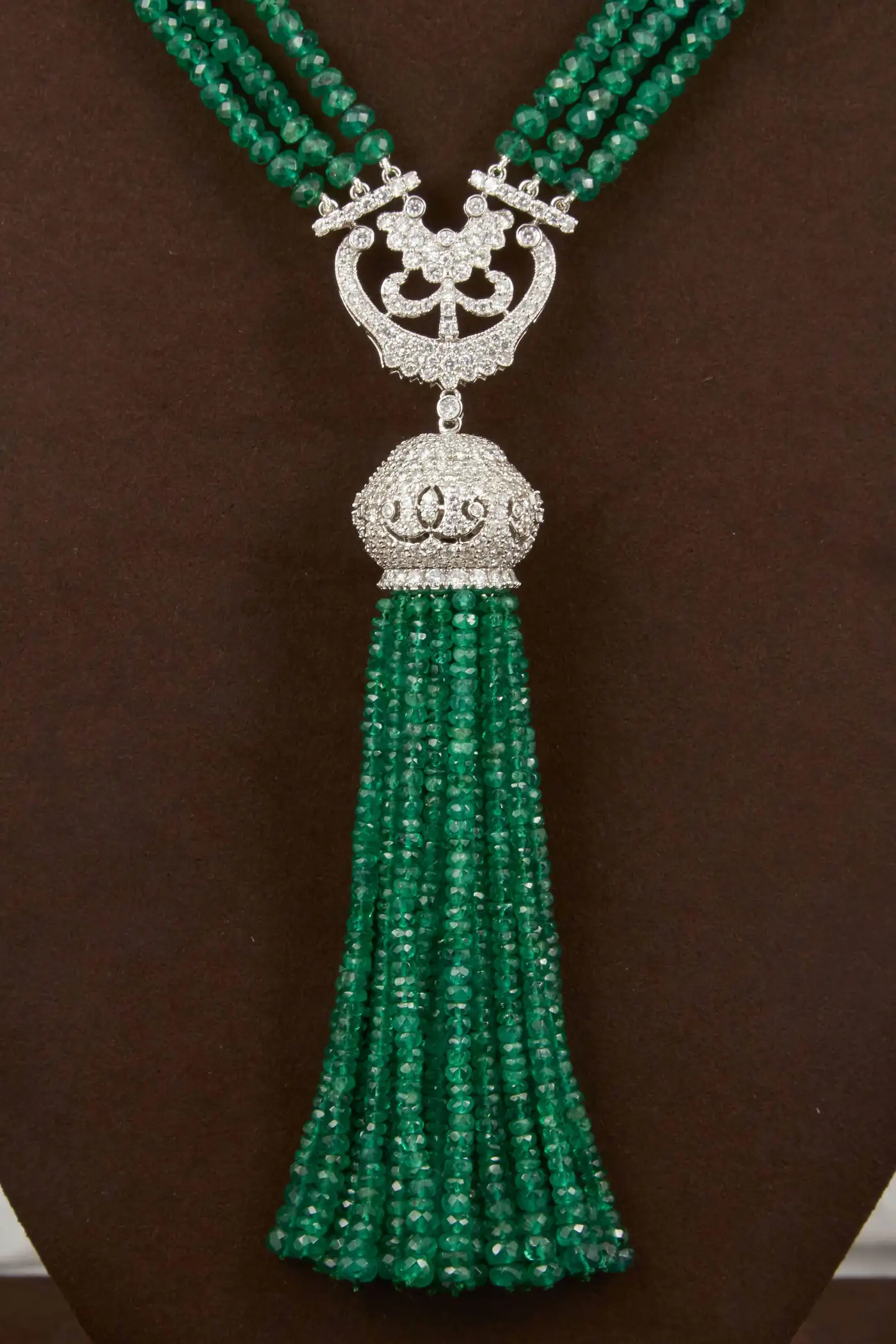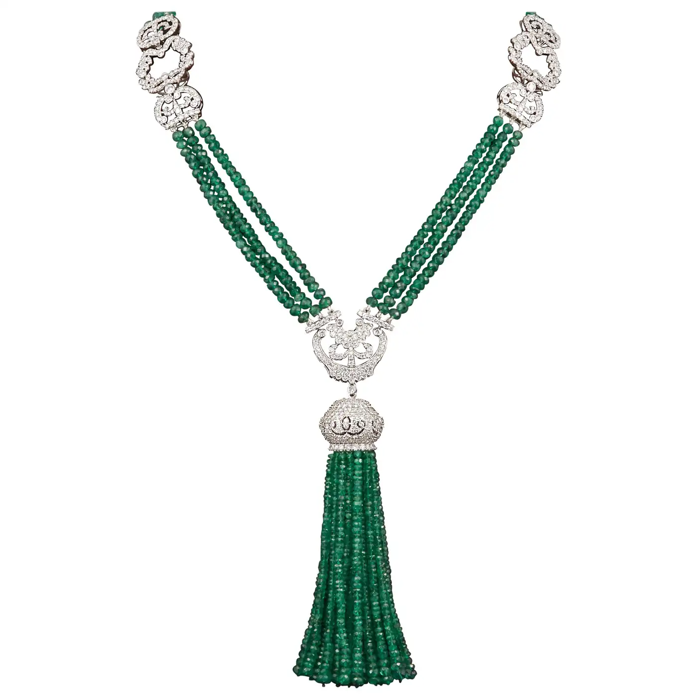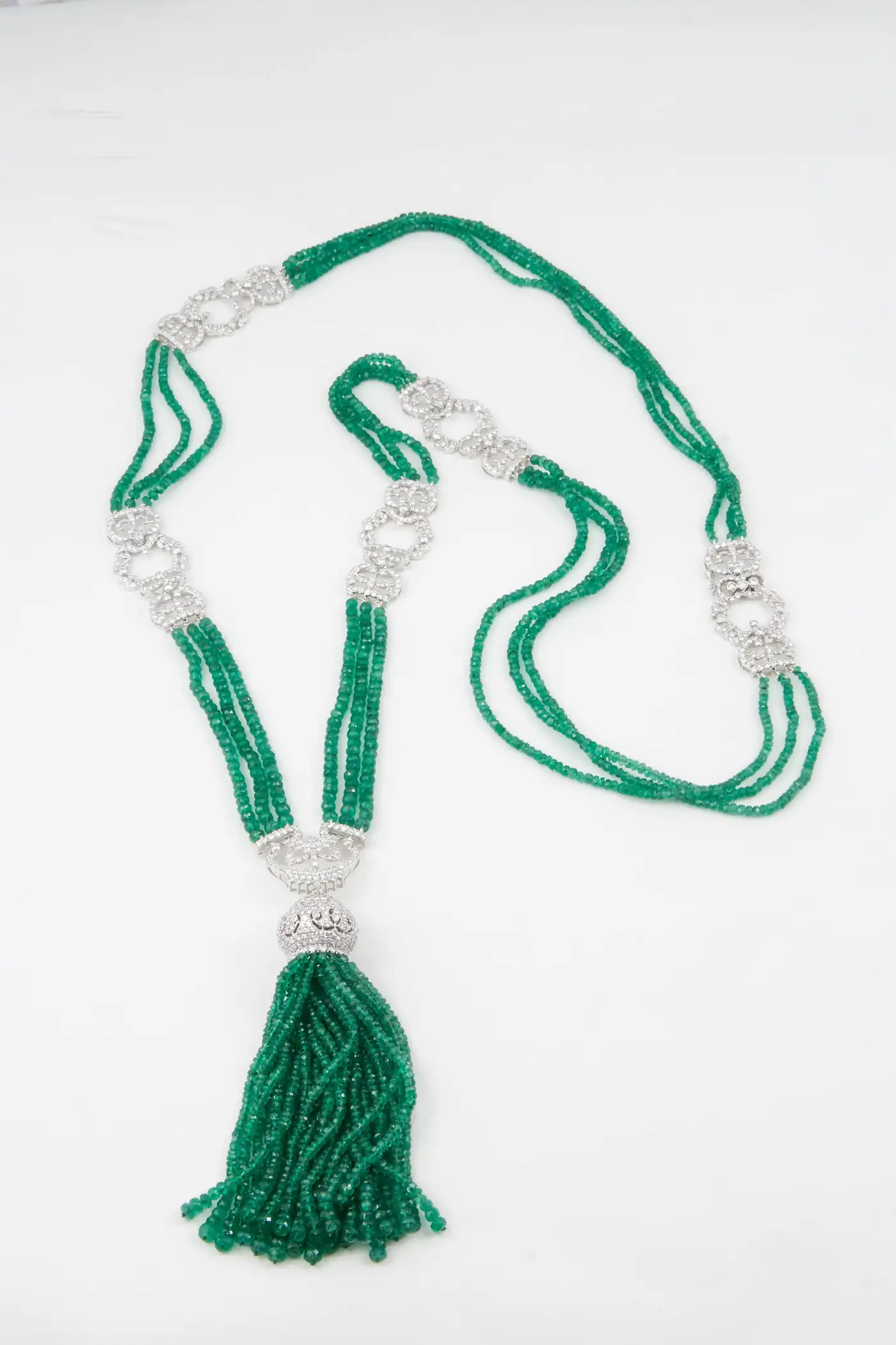 Unique Green Emerald and Diamond Tassel Necklace